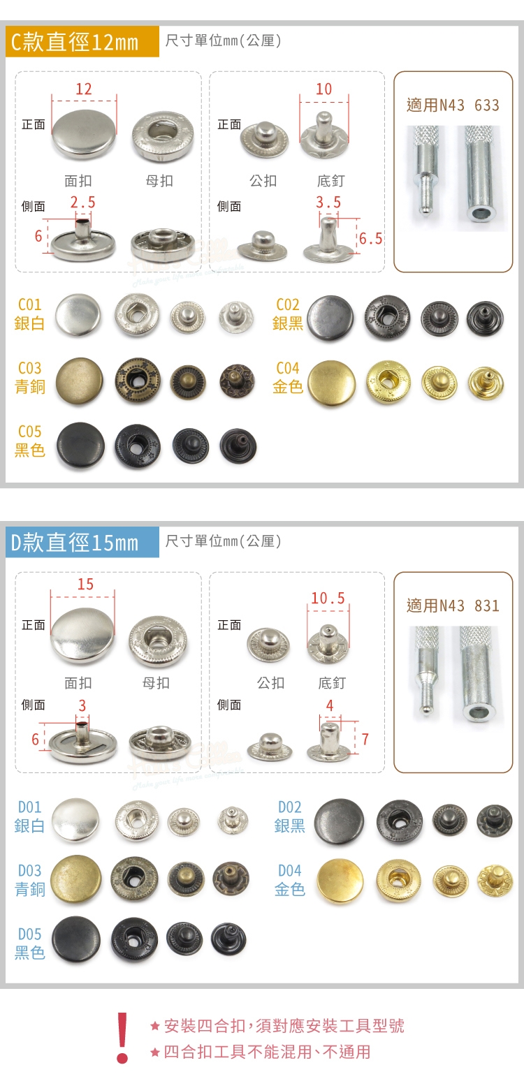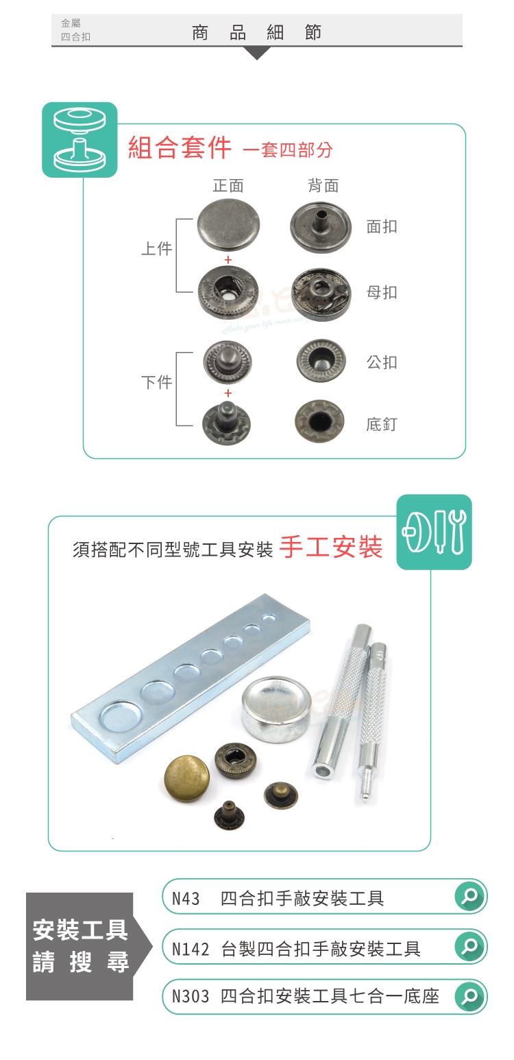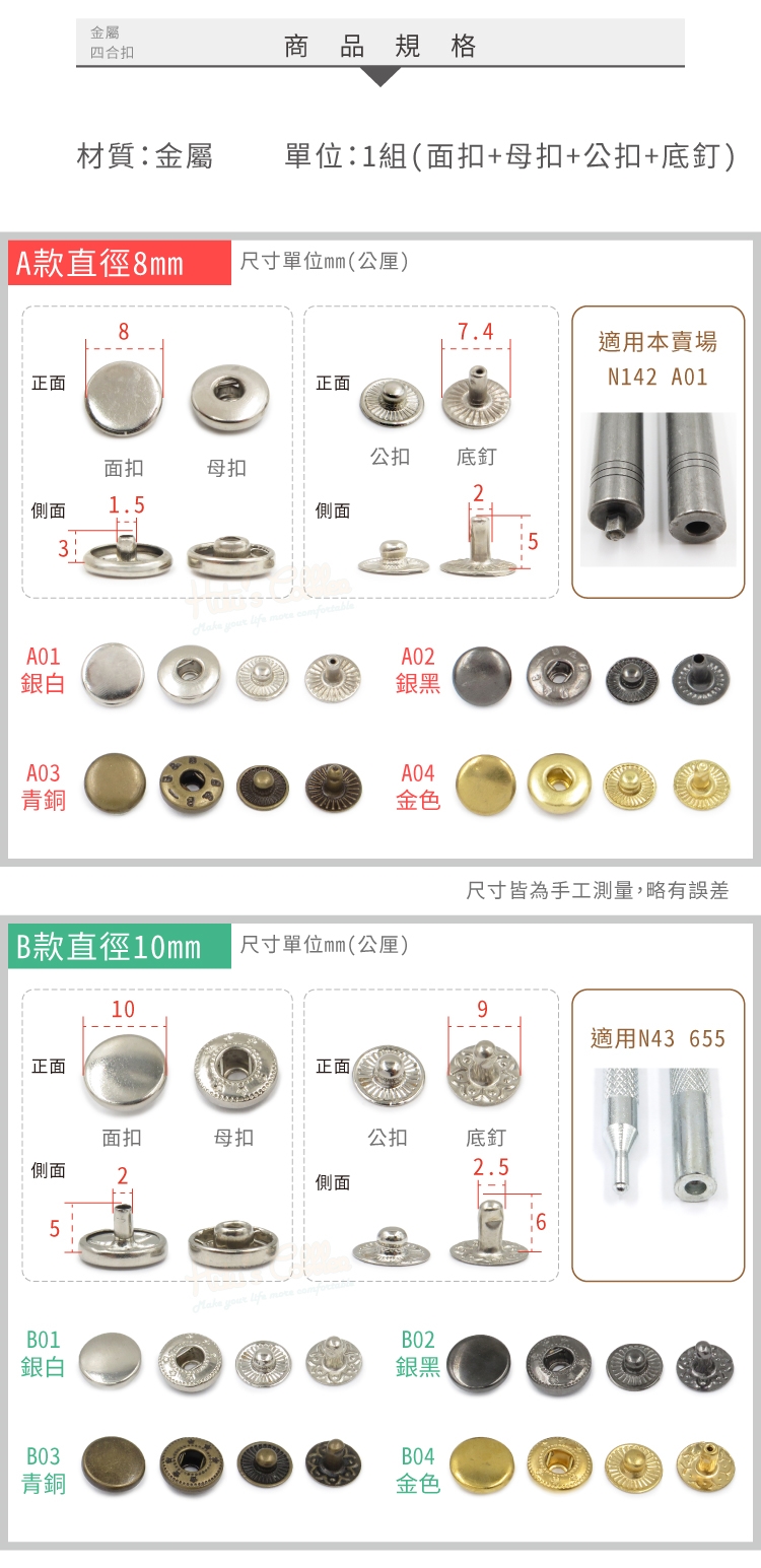 A款 面扣直徑8mm 安裝工具適用本賣場N142 A01