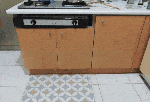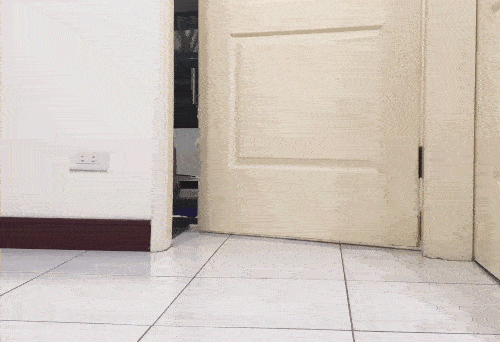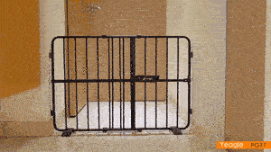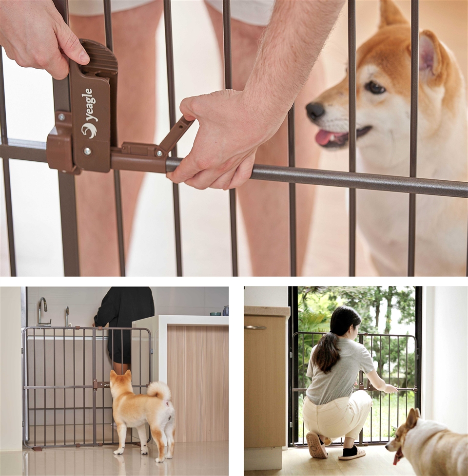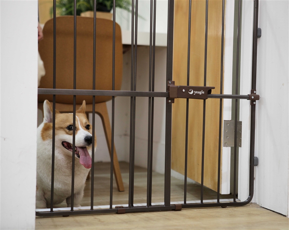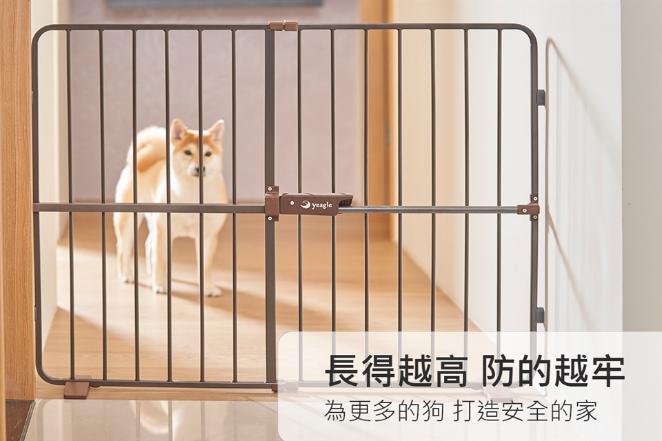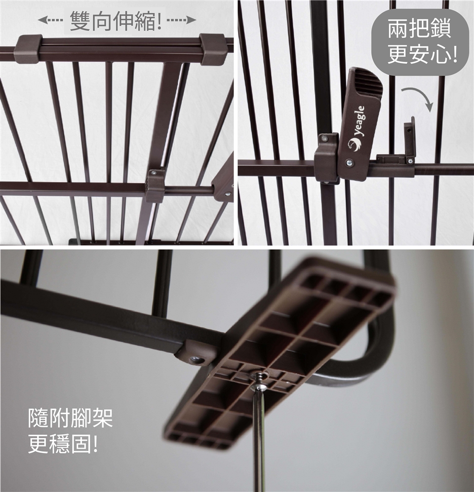 將柵欄拉至適當寬度,再把小把手下壓固定,最後用大把手將門欄壓下頂住牆面。