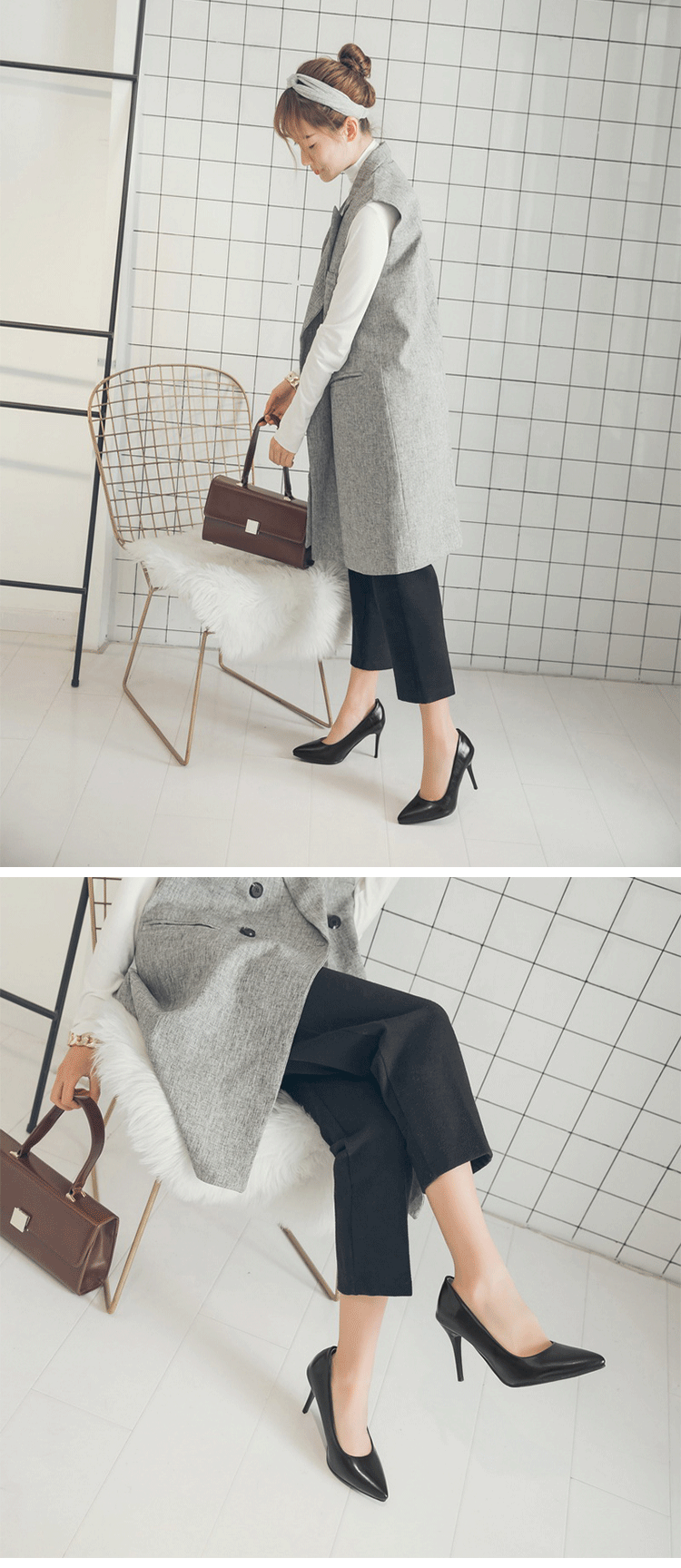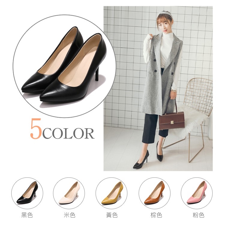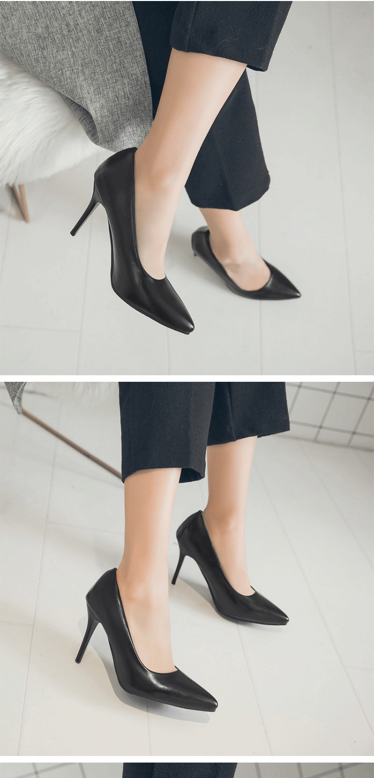 【Kissxxx】尖頭跟鞋細跟鞋/尖頭淺口美腳效果性感細高跟鞋 黑