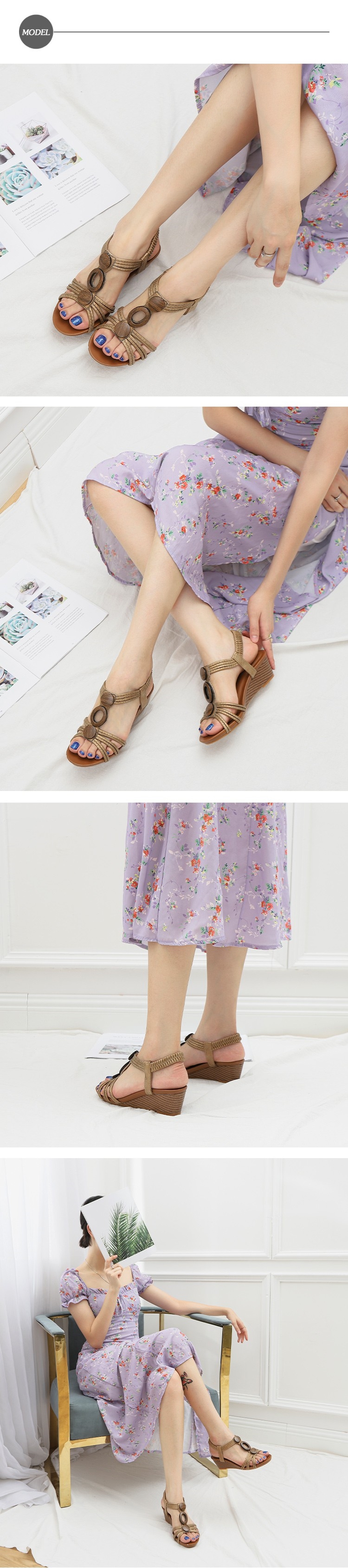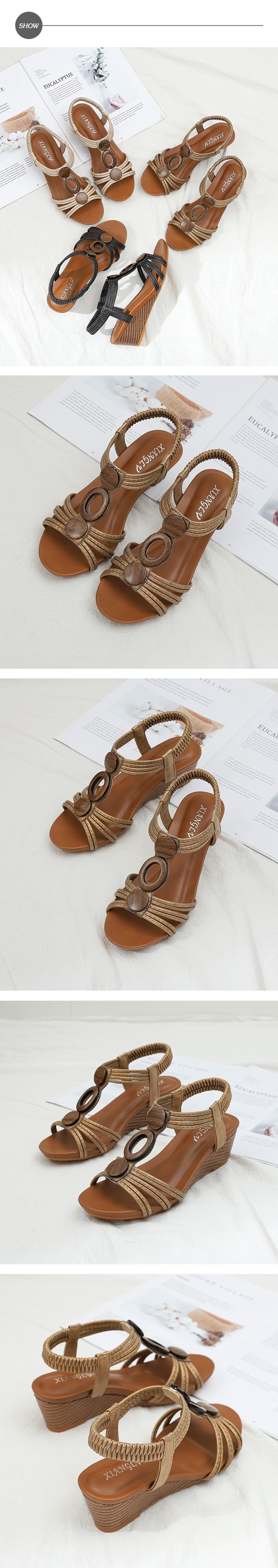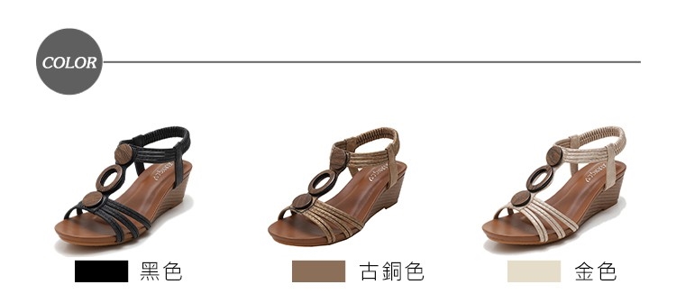 【QUEENA】縷空涼鞋坡跟涼鞋/典雅縷空線繩復古木釦造型坡跟羅馬涼鞋 古銅