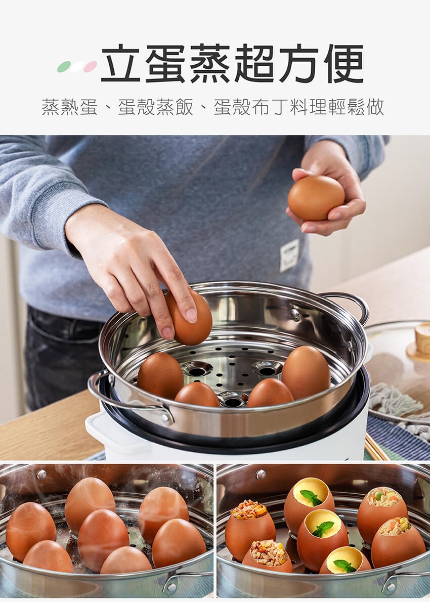 ※ 蒸具組傳熱效果佳,為安全起見,取出蒸架注意餘溫避免燙手。