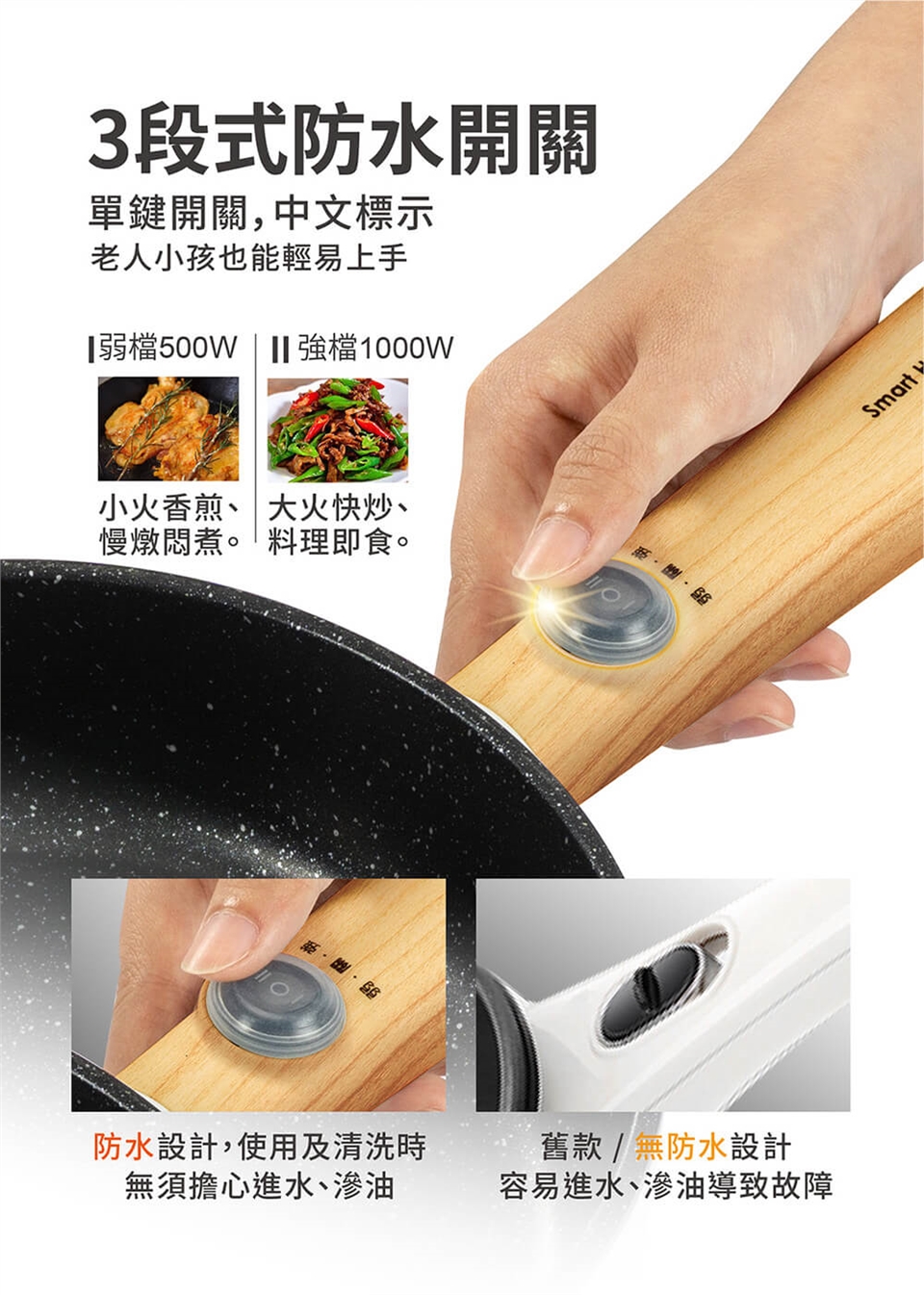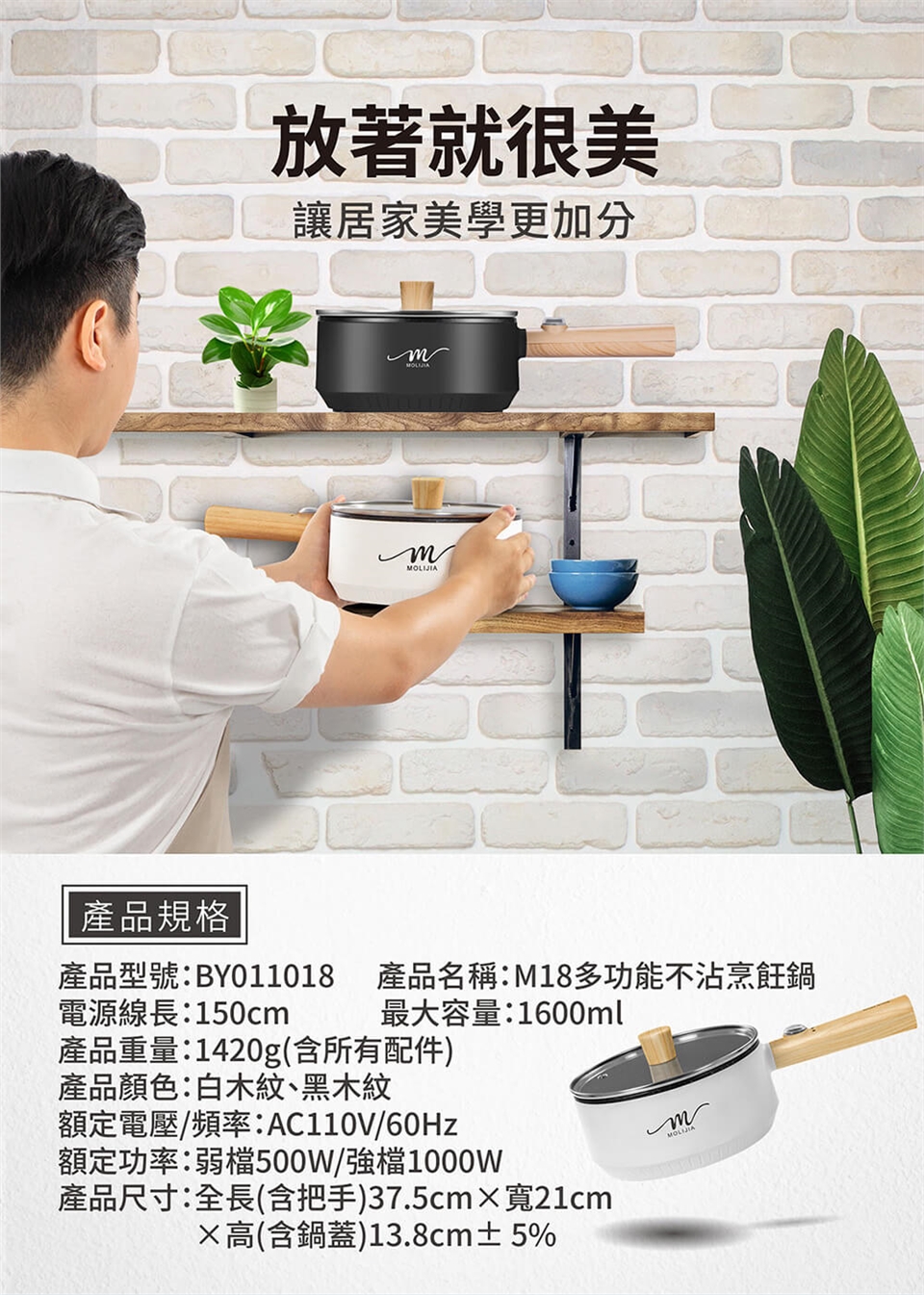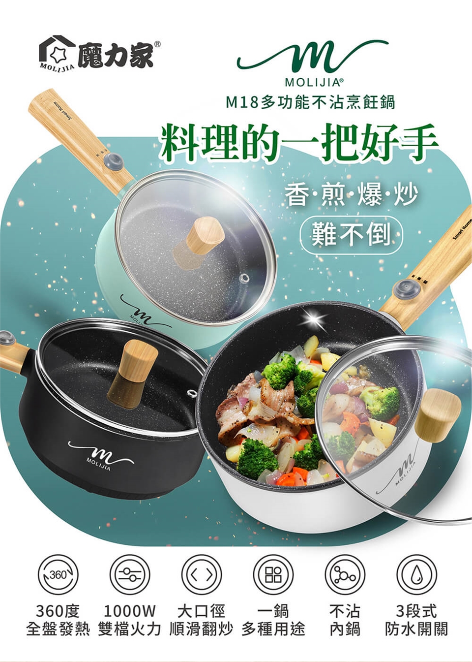 產品名稱:【MOLIJIA 魔力家】M18雙層防燙麥飯石不沾電煎烹飪鍋-木紋款
