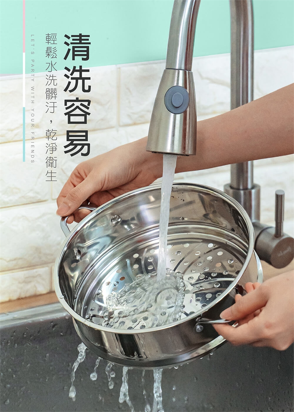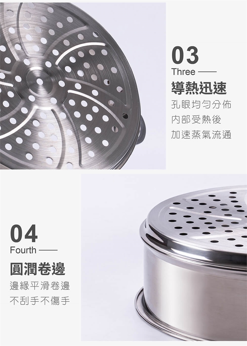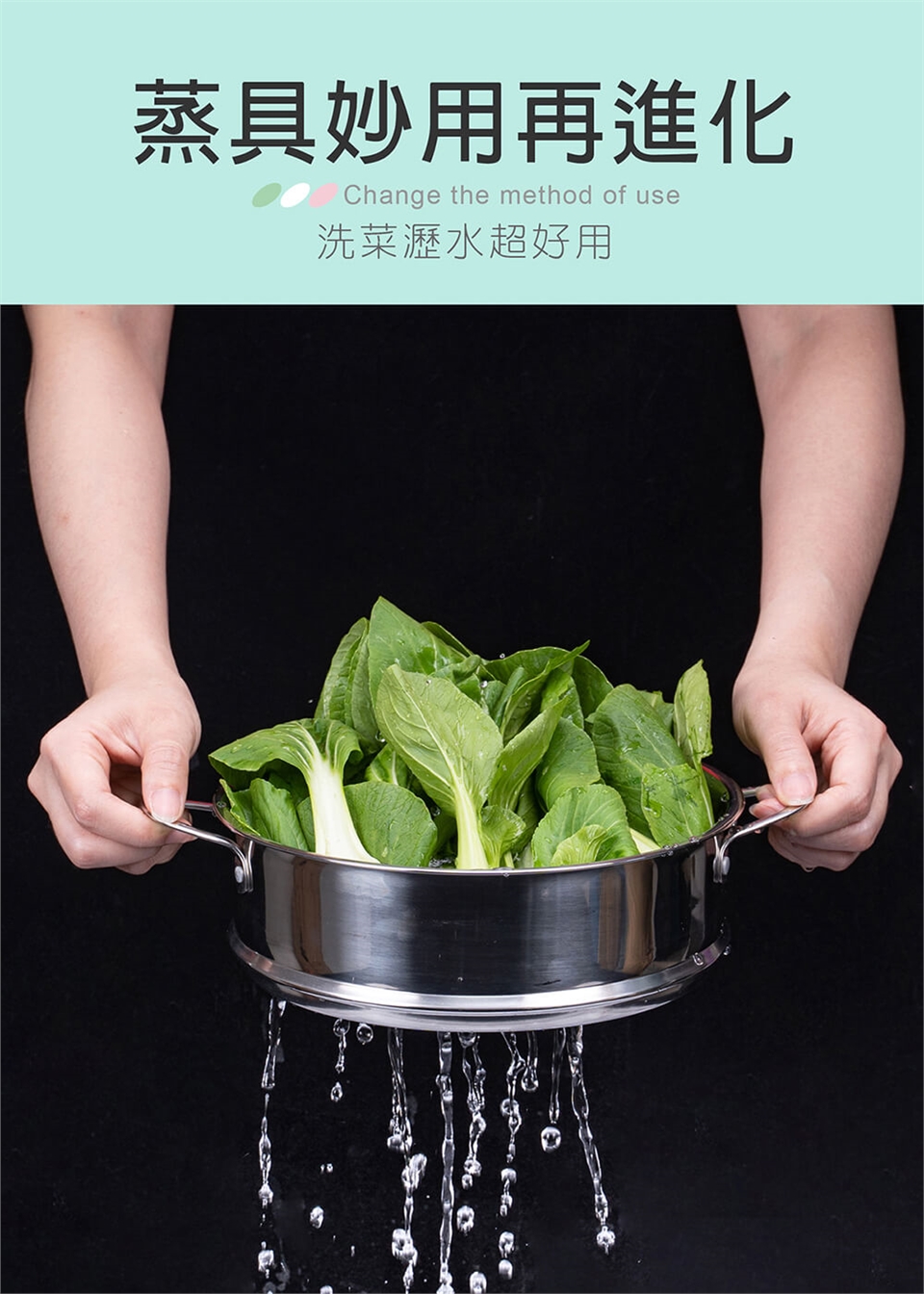 ※ 蒸具組傳熱效果佳,為安全起見,取出蒸架注意餘溫避免燙手。