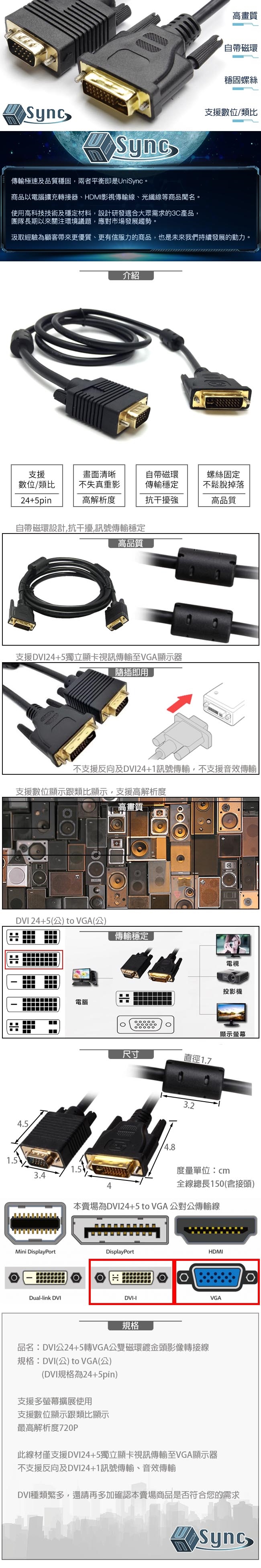 ◆ 注意:此線材僅支援DVI24+5獨立顯卡視訊傳輸至VGA顯示器,不支援反向及DVI24+1訊號傳輸。