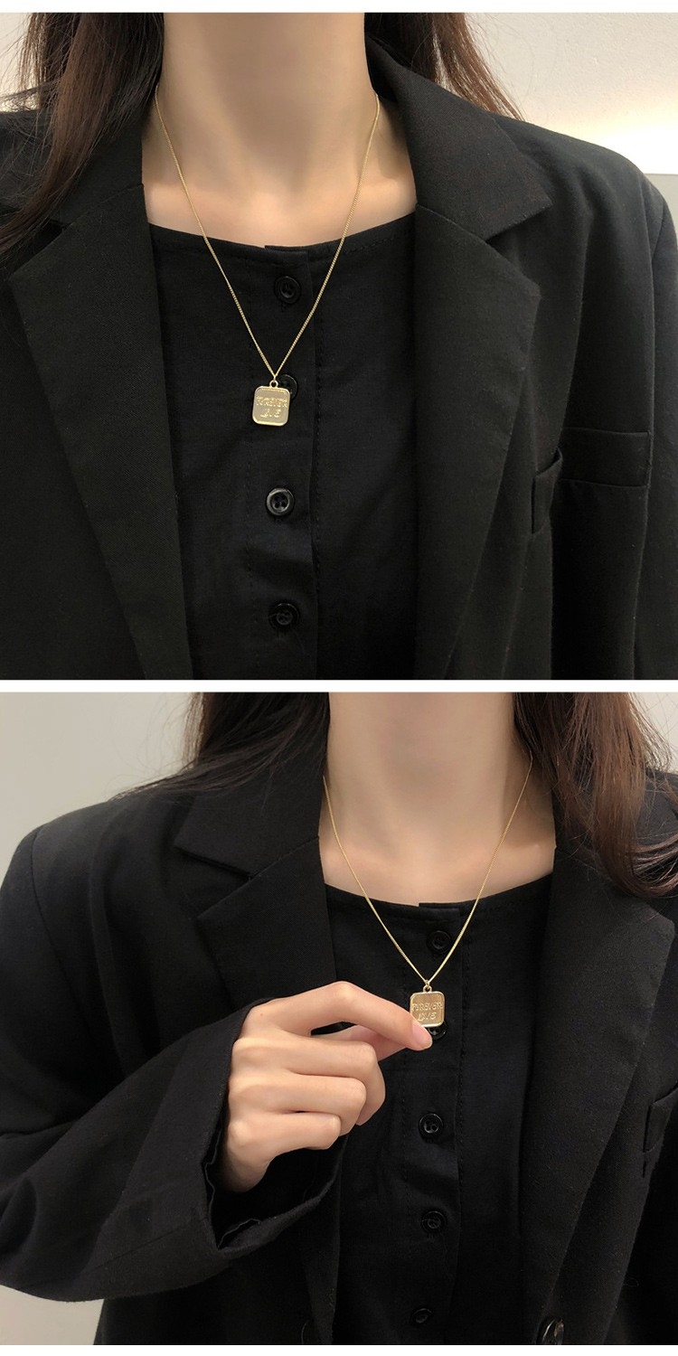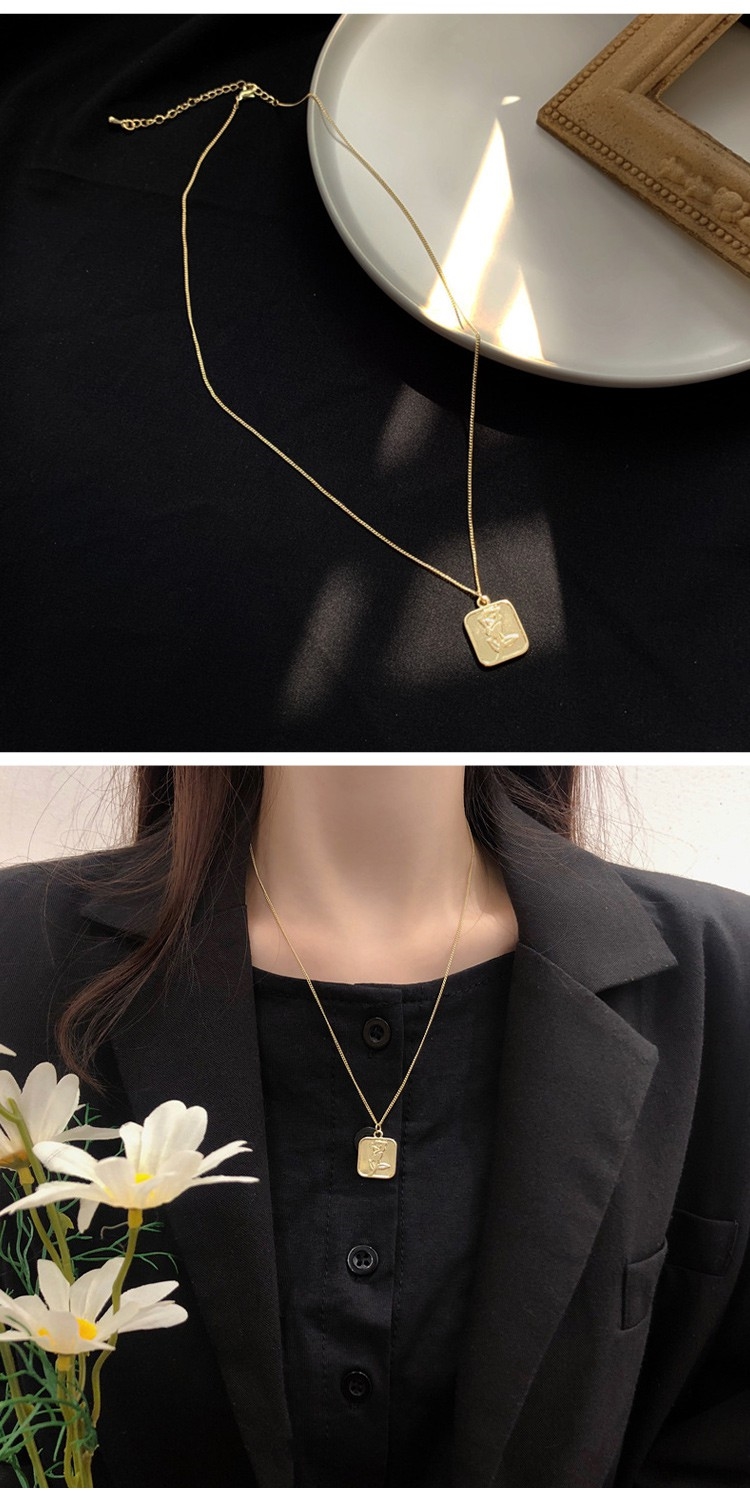【00:00】韓國設計字母花朵個性方牌項鍊