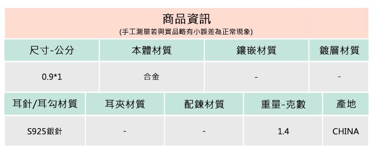 ◆耳環屬個人衛生用品,一經開封恕不退換。