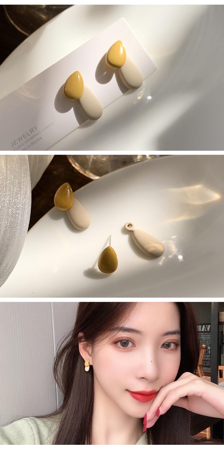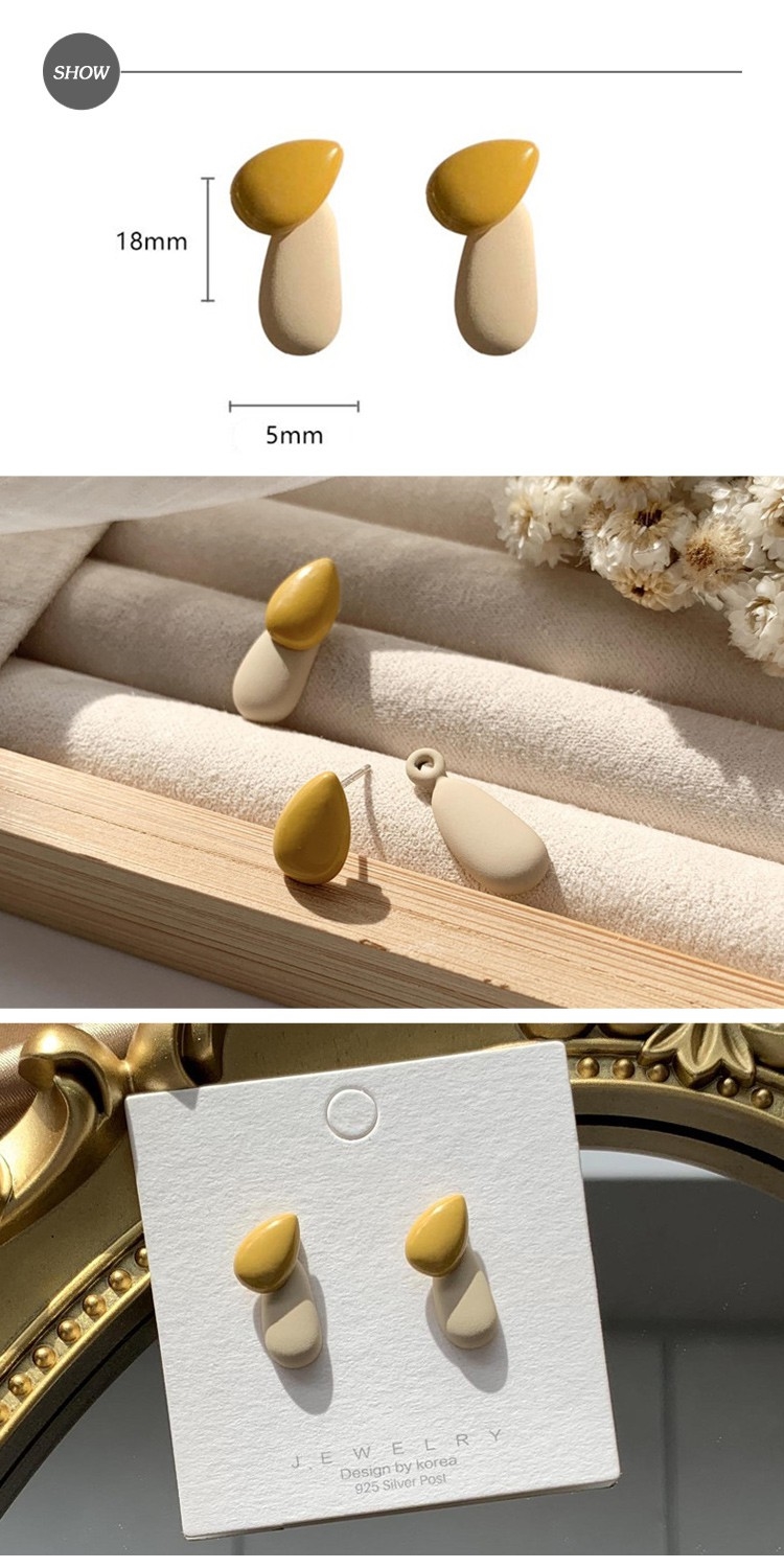 【INES】韓國設計S925銀針撞色磨砂可愛水滴後掛式雙層耳環
