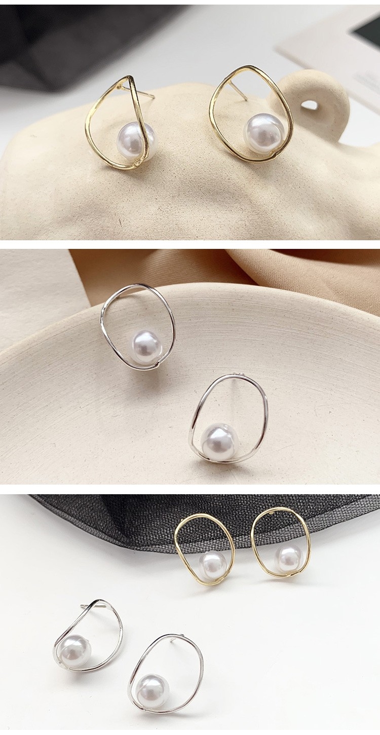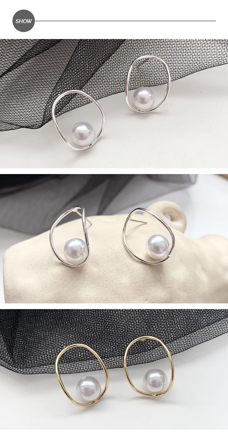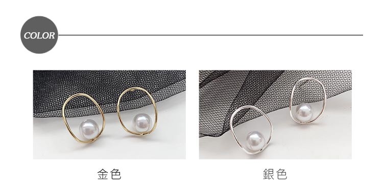 【MISS KOREA】韓國設計S925銀針橢圓金屬線條氣質珍珠耳環 (2色任選)