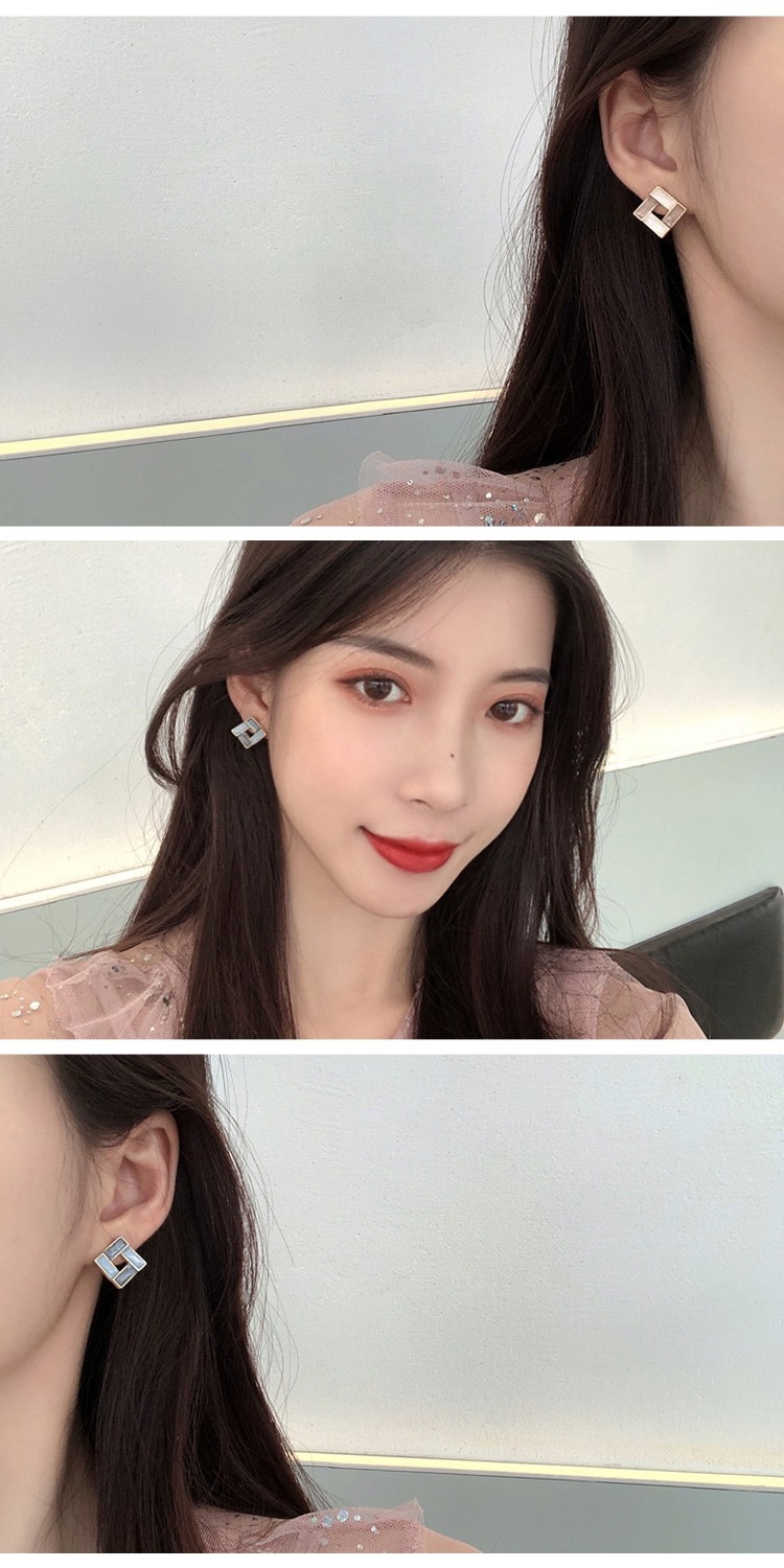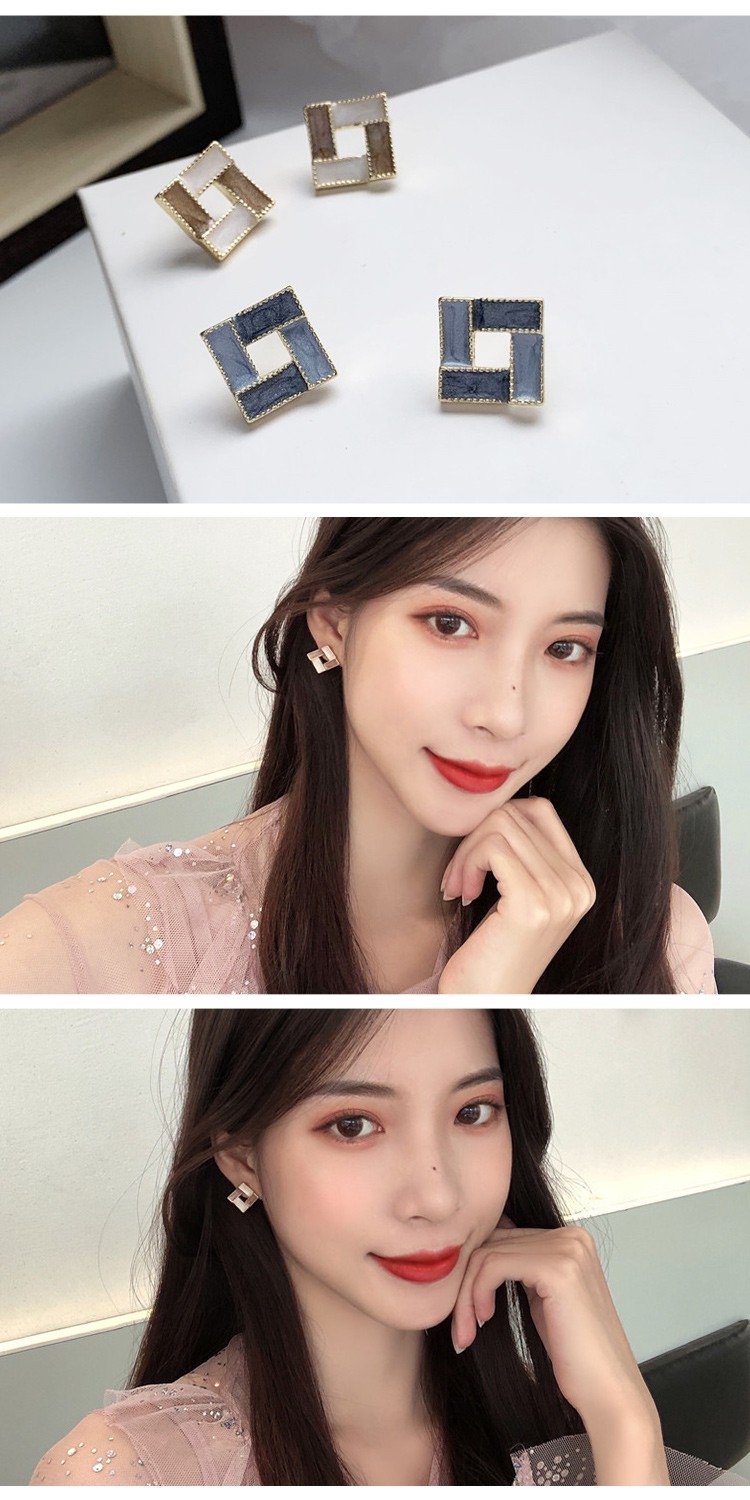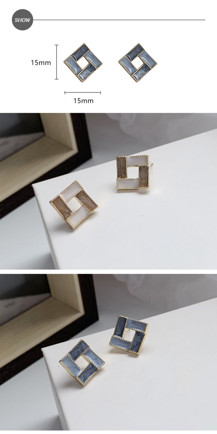 【INES】韓國設計S925銀針復古幾何小巧方形撞色滴釉耳環 (2色任選)