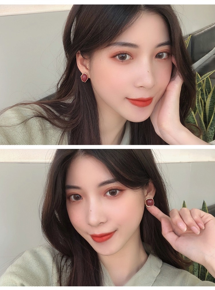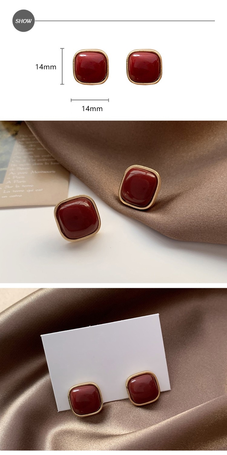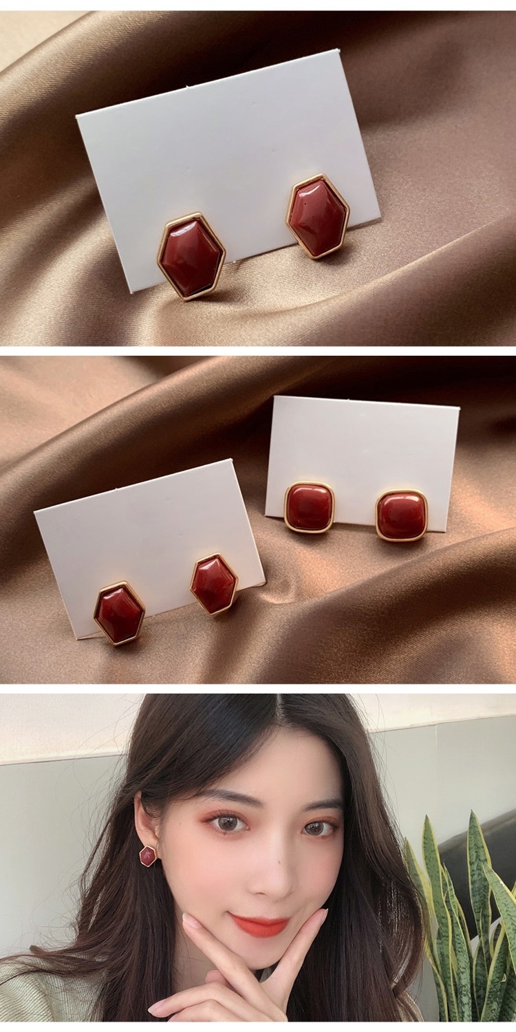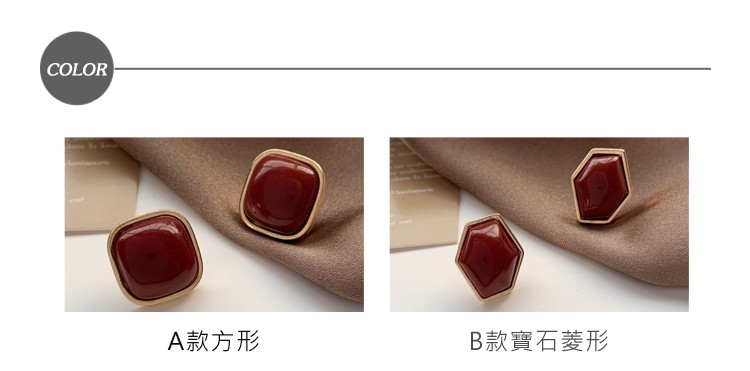 【INES】韓國設計S925銀針溫柔氣質暗紅色復古不規則寶石耳環 (2款任選)