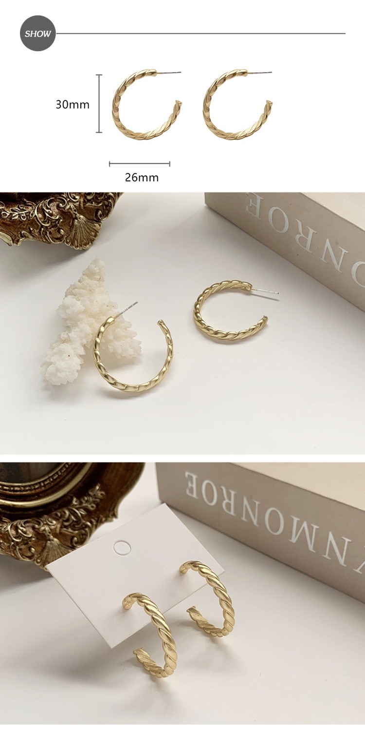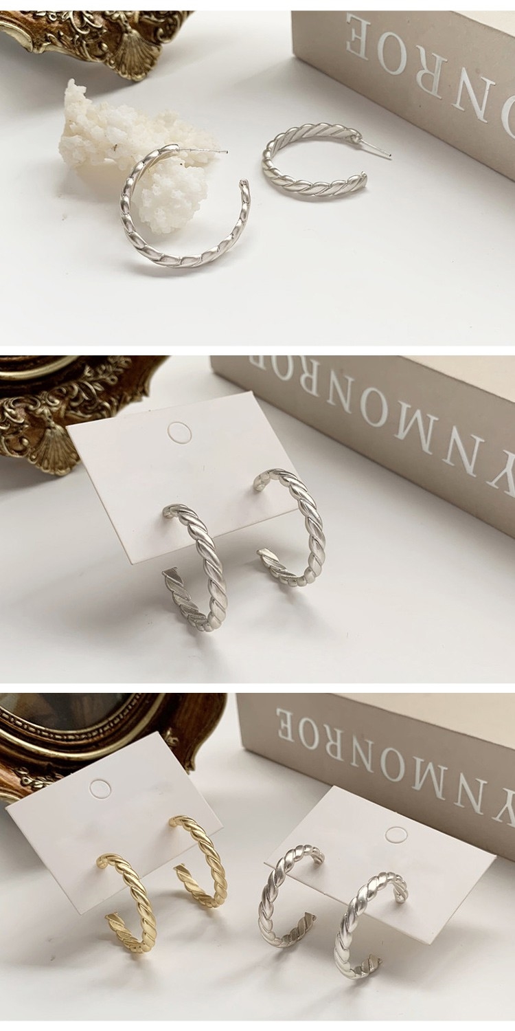 【00:00】韓國設計S925銀針經典復古金屬麻花C圈耳環 (2色任選)
