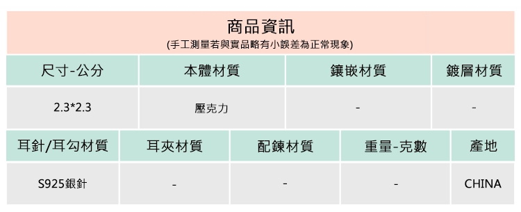 ◆耳環屬個人衛生用品,一經開封恕不退換。