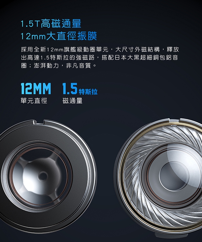 大尺寸外磁結構,釋放出高達1.5特斯拉的強磁路,搭配日本大黑超細銅包鋁音圈,