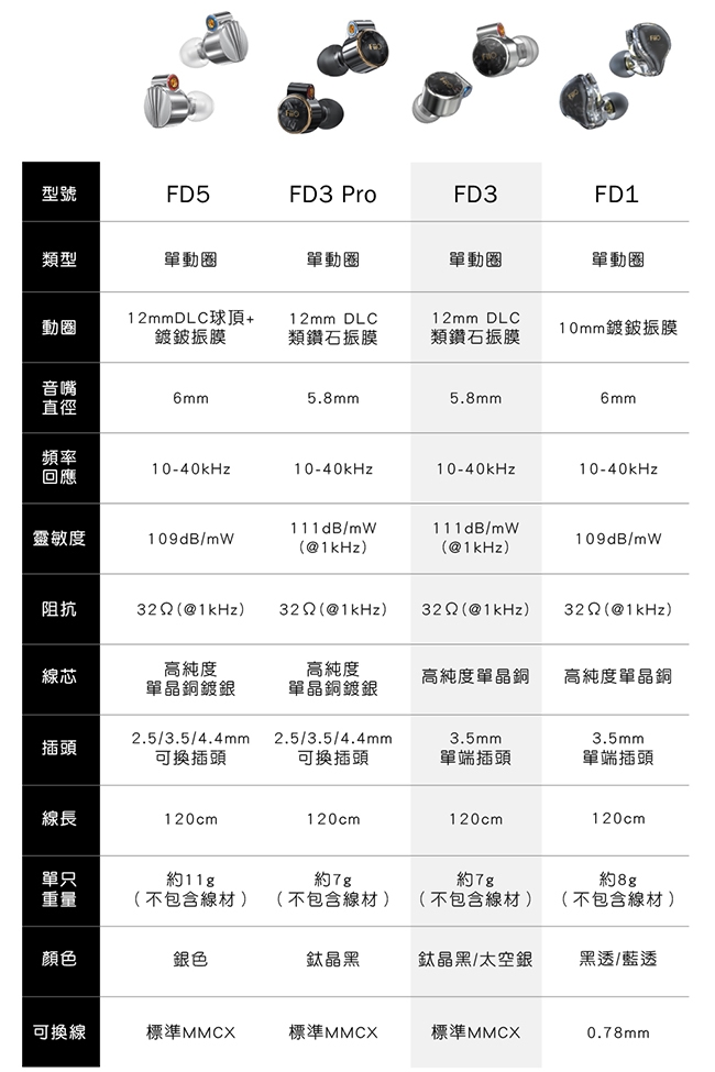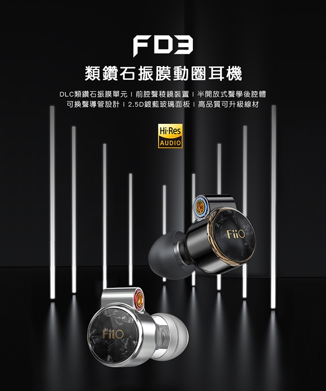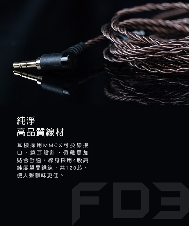 【FiiO FD3 類鑽石振膜動圈MMCX可換線耳機】