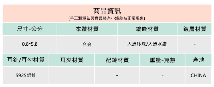 ◆合金飾品一經使用可能隨時間失去光澤或褪色,此為正常物理現象,妥善使用保存可延長飾品壽命。