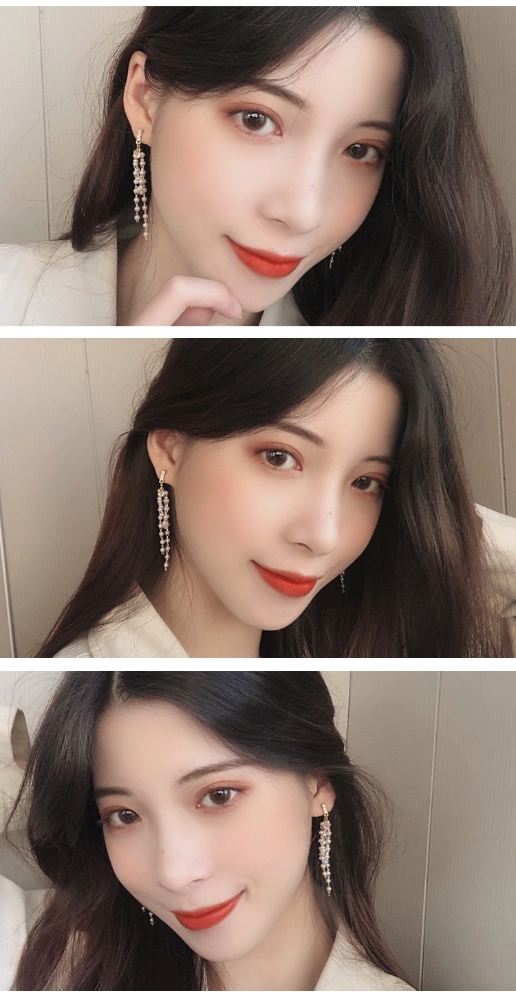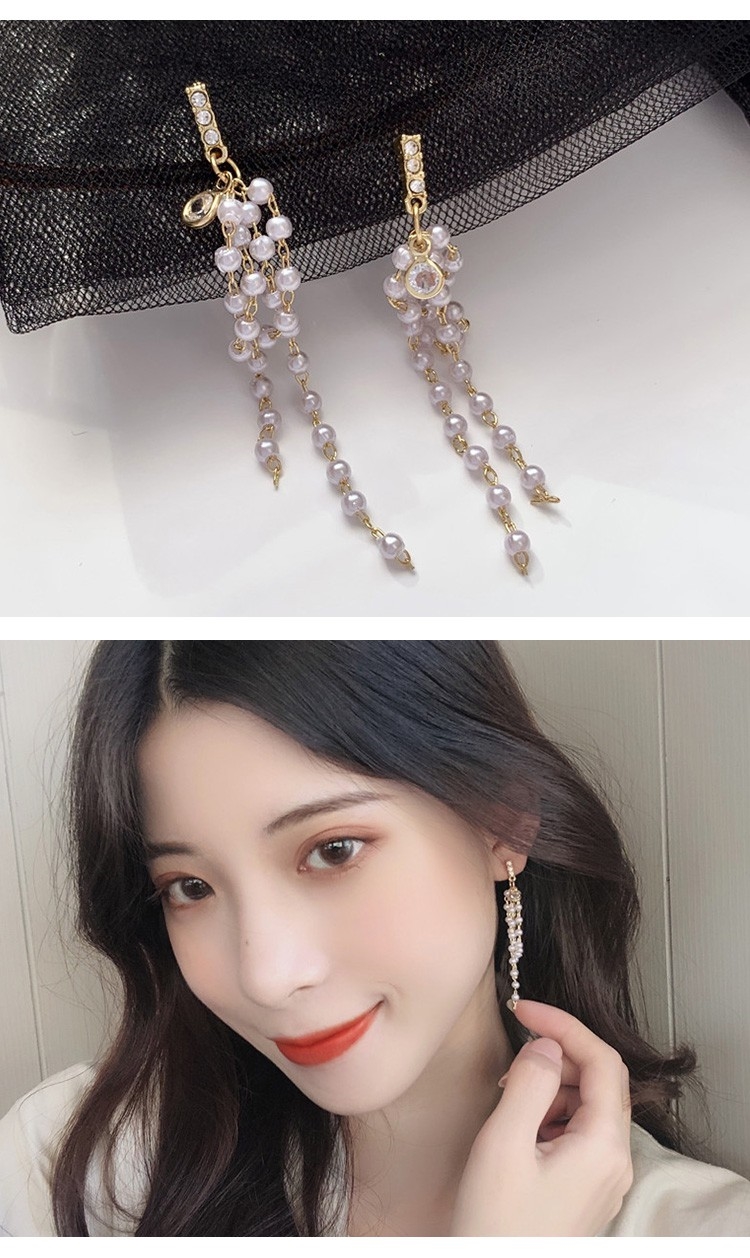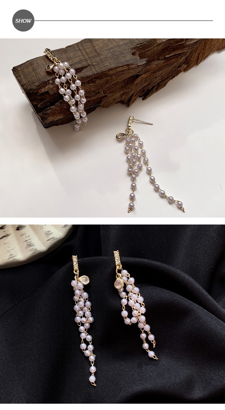 【MISS KOREA】韓國設計S925銀針法式美鑽溫柔氣質珍珠流蘇耳環