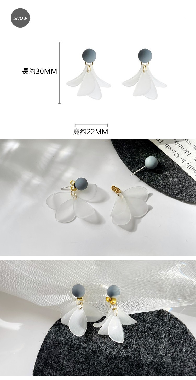 【SECRET BOX】韓國設計S925銀針小清新白色花瓣優雅後掛式球球耳環
