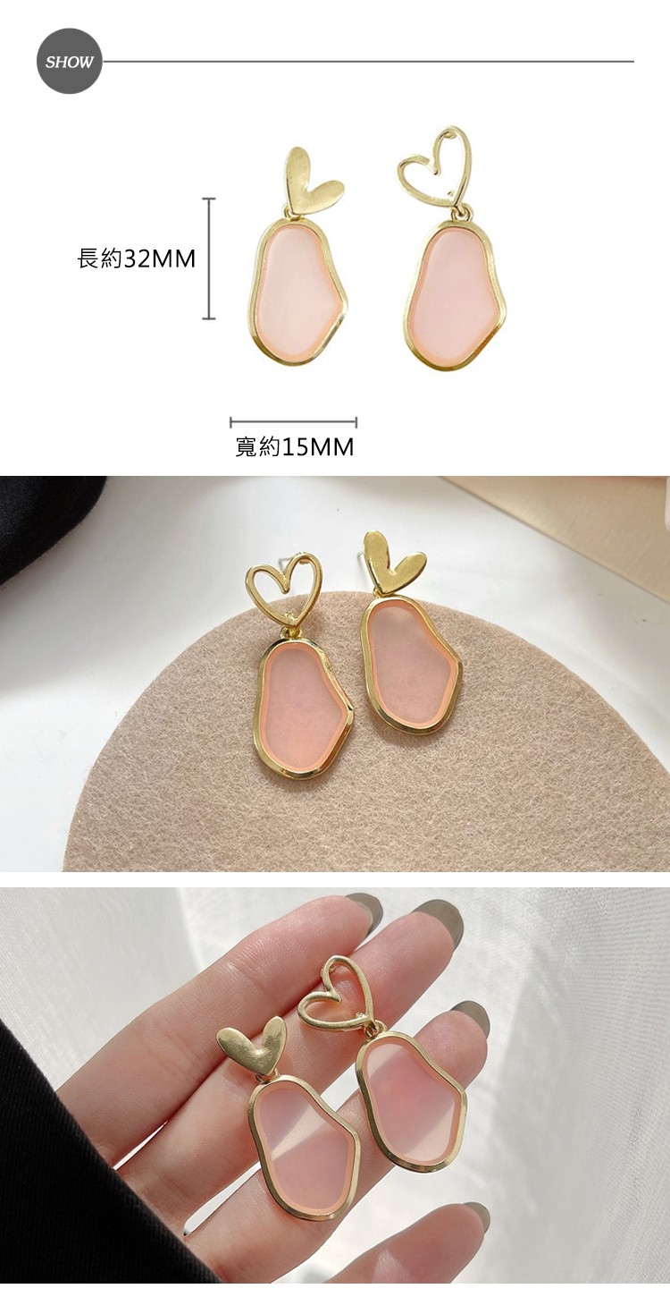 【MISA】韓國設計S925銀針甜美不對稱愛心幾何粉色造型耳環