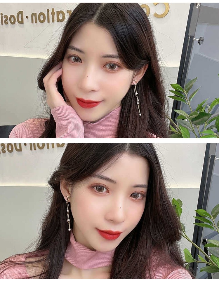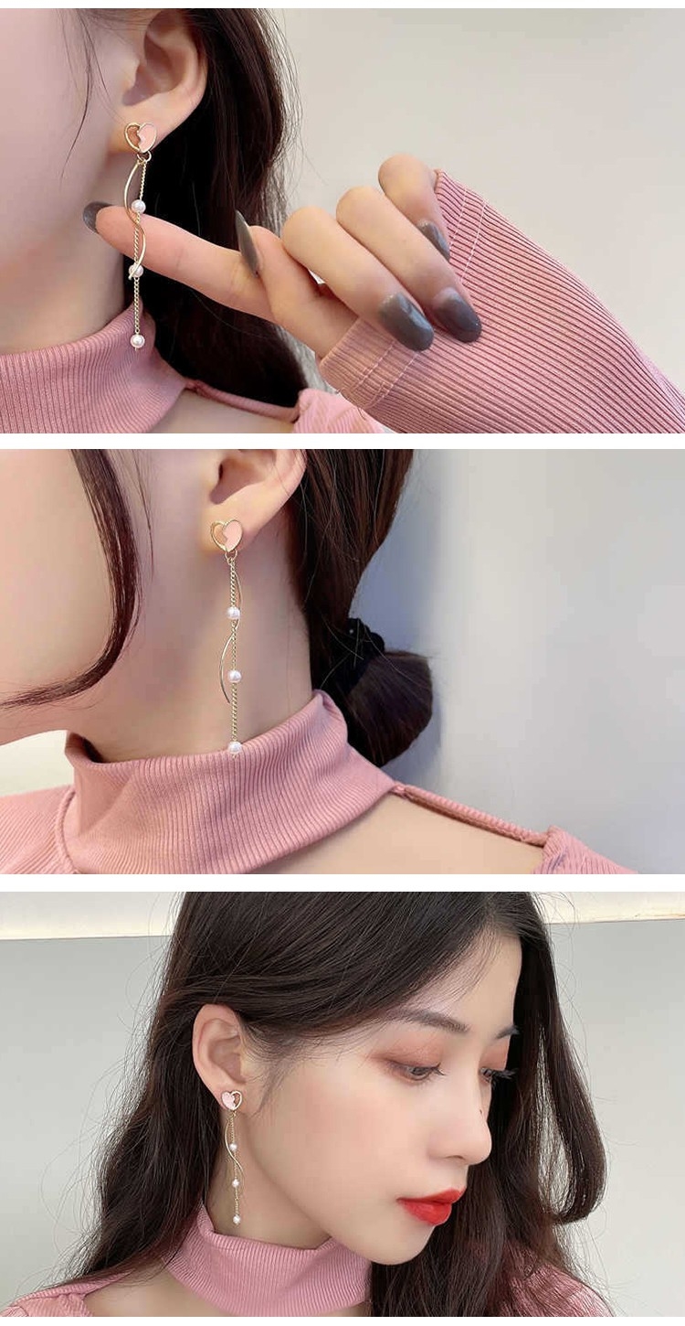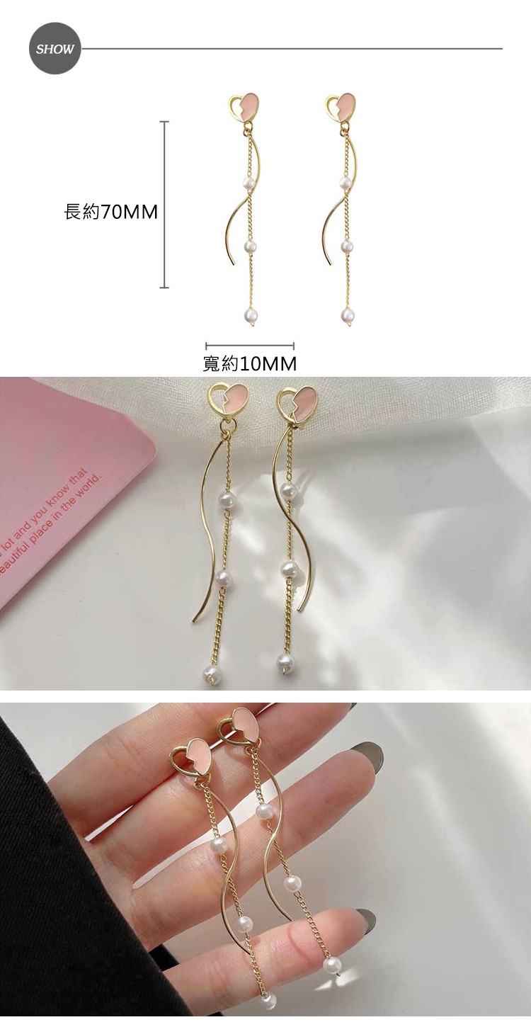 【MISS KOREA】韓國設計S925銀針氣質桃心曲線珍珠流蘇造型耳環