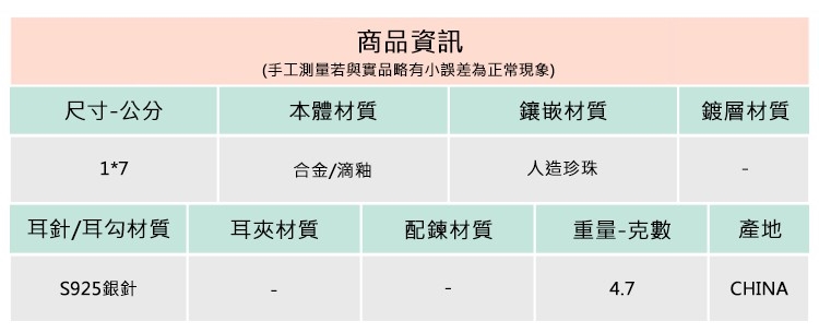 ◆合金飾品一經使用可能隨時間失去光澤或褪色,此為正常物理現象,妥善使用保存可延長飾品壽命。