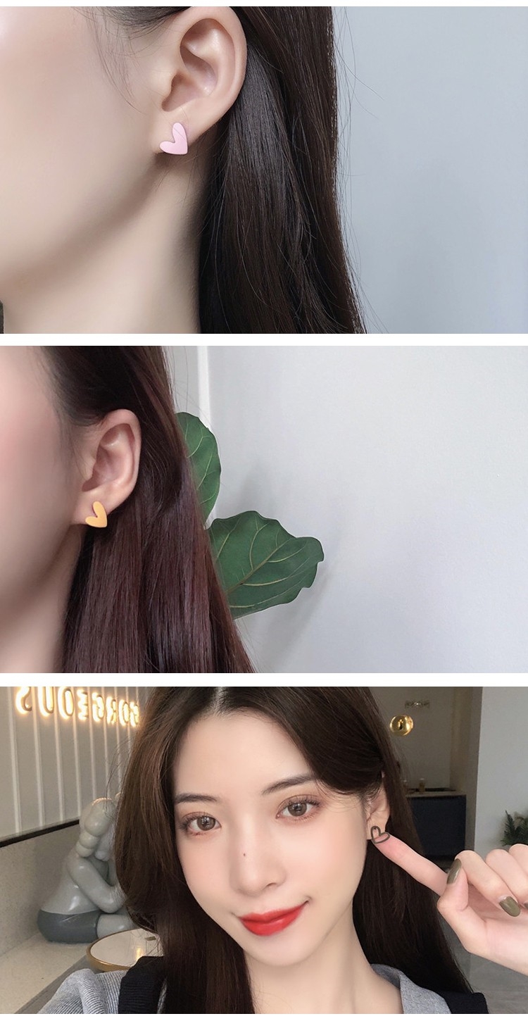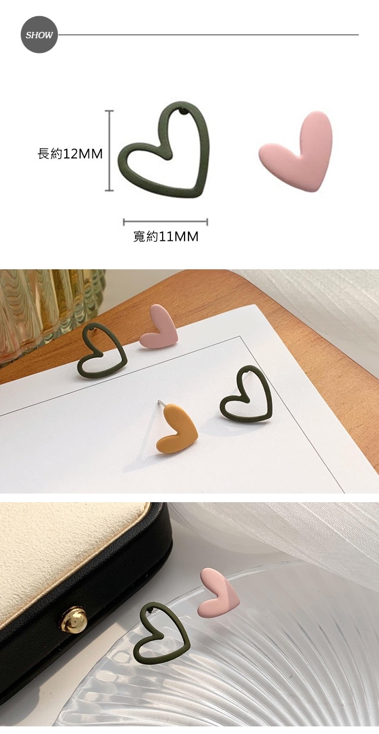 【MISA】 韓國設計S925銀針簡約撞色不對稱小愛心耳環 (2色任選)