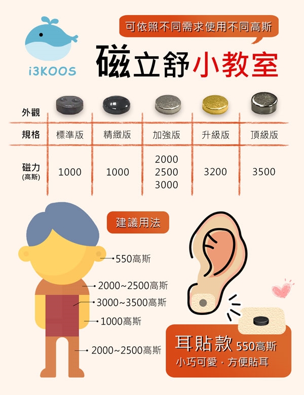 品名:i3KOOS磁立舒-550高斯磁力貼(耳貼款)