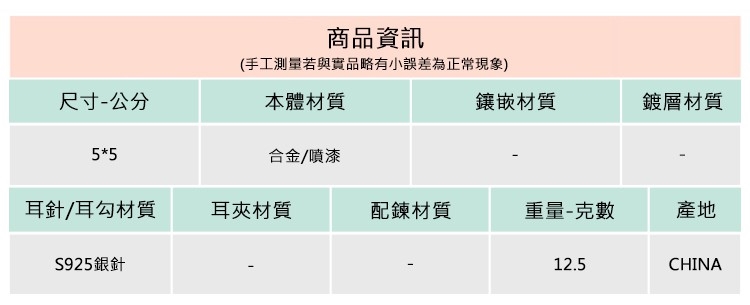 ◆合金飾品一經使用可能隨時間失去光澤或褪色,此為正常物理現象,妥善使用保存可延長飾品壽命。