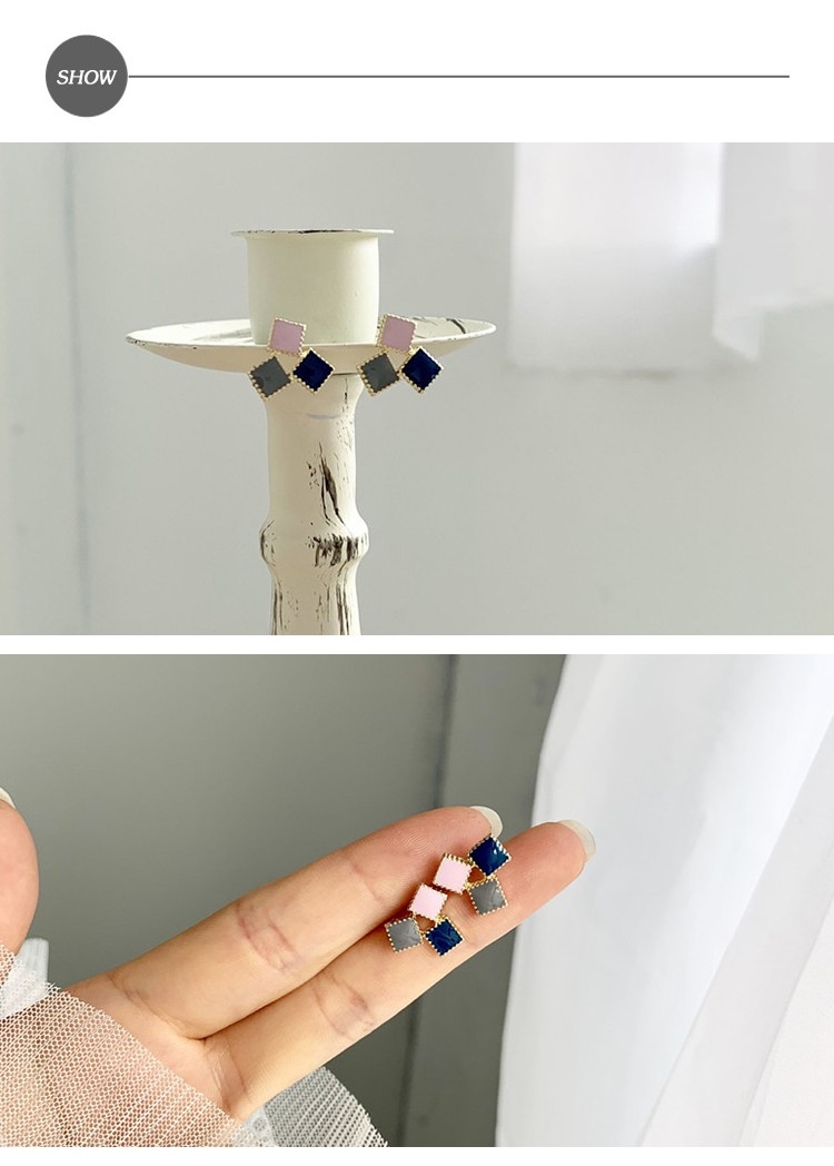 【INES】韓國設計S925銀針復古撞色方塊滴釉拼接耳環 (2款任選)