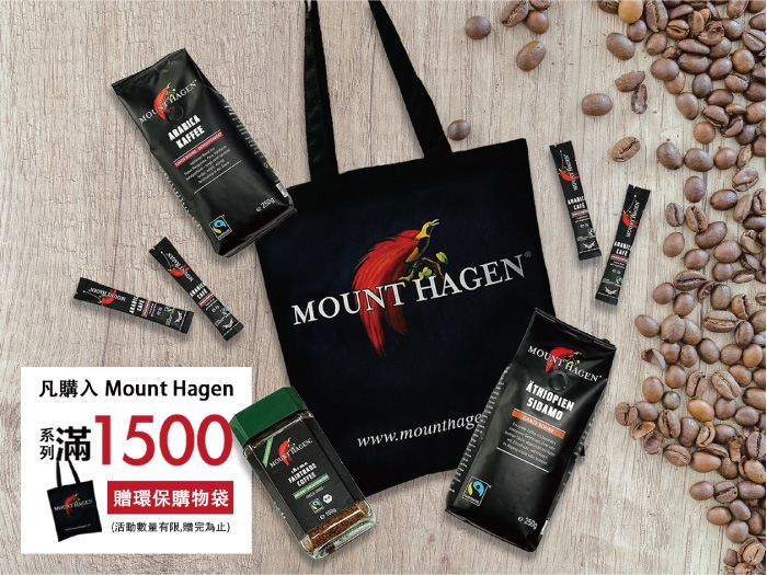 Mount Hagen公平貿易即溶咖啡經冷凍乾燥技術處理,將100%阿拉卡比咖啡豆與柔順、香味濃郁的口感融合,這些咖啡豆都是經過精心挑選,選擇只純粹從事栽種、並為他們勞工提供了安全的社會和經濟環境的種植者,這樣做,Mount Hagen可協助支持環境的永續性。