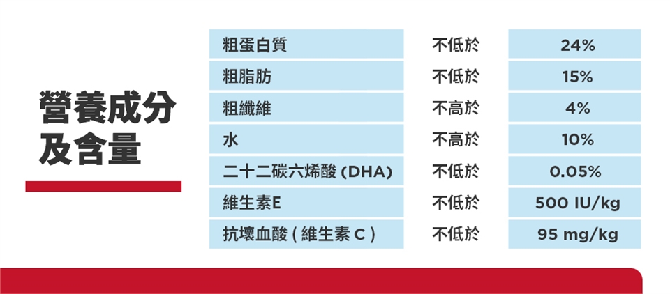 請見產品外包裝已取得詳細的餵食指南,視寵物維持最佳體重所需,斟酌調整餵食量,若不確定,可向獸醫師諮詢。若首次餵食本產品,請以七天以上時間轉換餵食,逐漸增加新食物並減少舊食物。請隨時提供清新飲用水!寵物的營養需求會隨著年齡增長而改變,請於寵物健檢時諮詢醫師相關資訊。