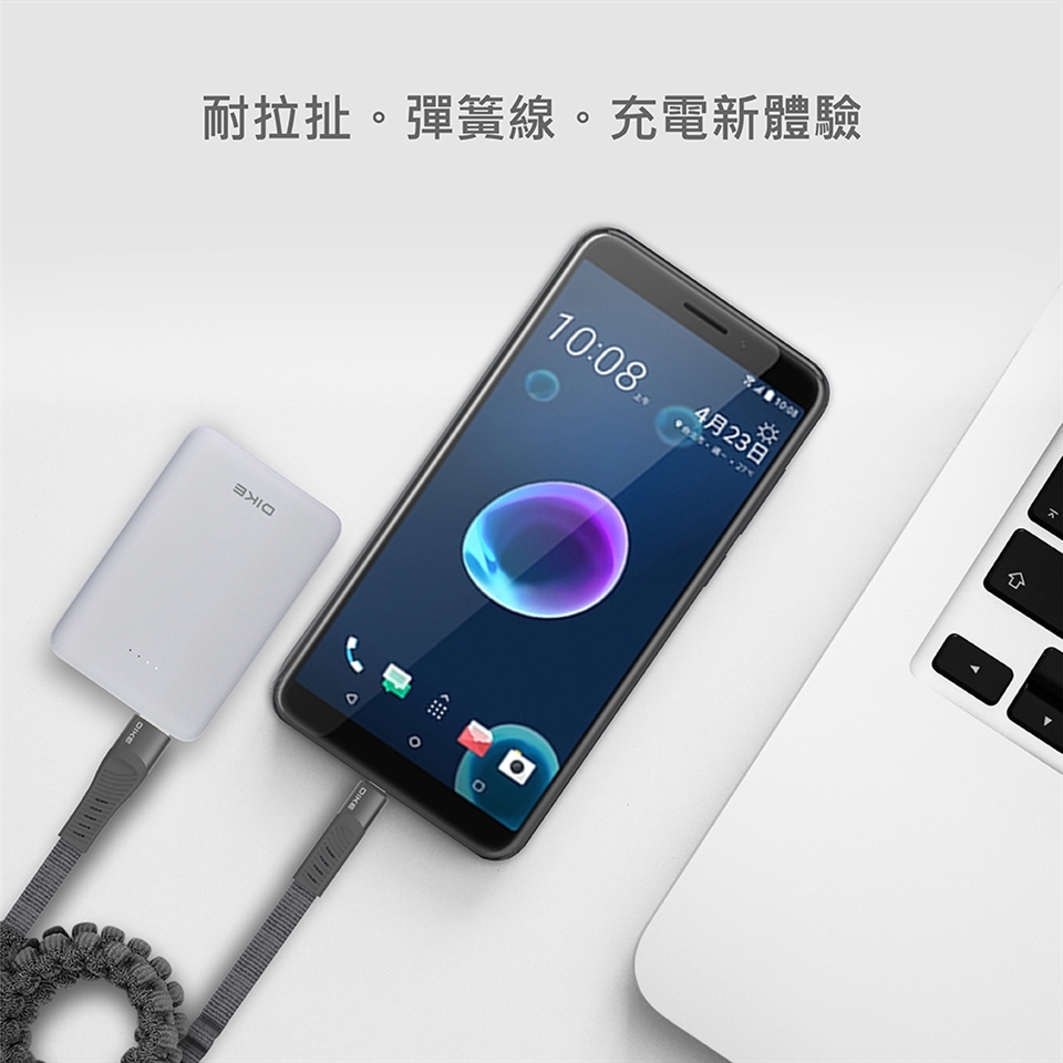 DIKE 彈簧伸縮編織Type-C-1.2M快充扁線 DLC712GY