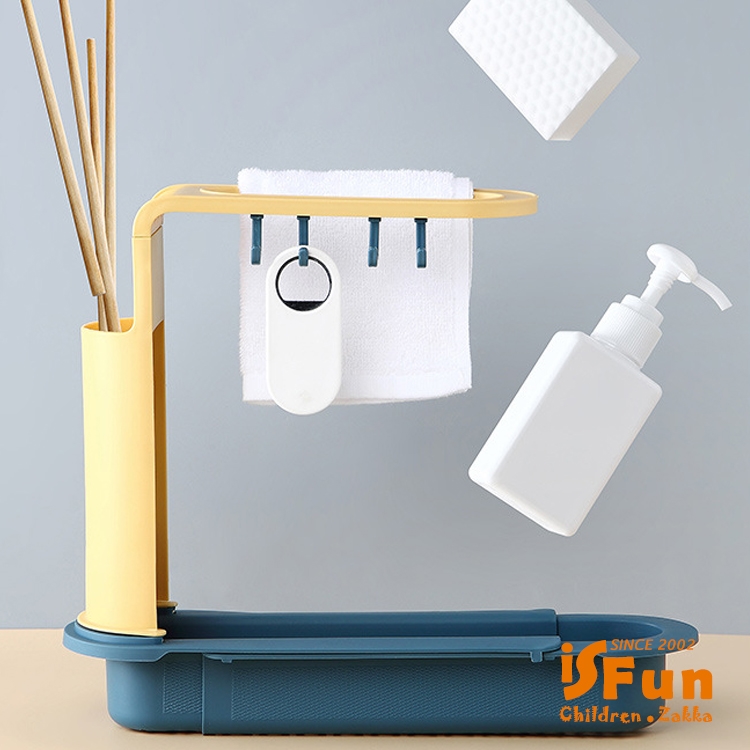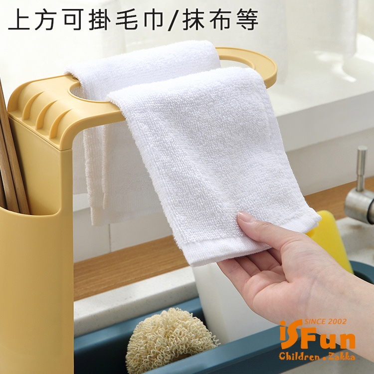 簡約北歐風格瀝水收納架,多功能設計可放置筷子、抹布、海綿等,