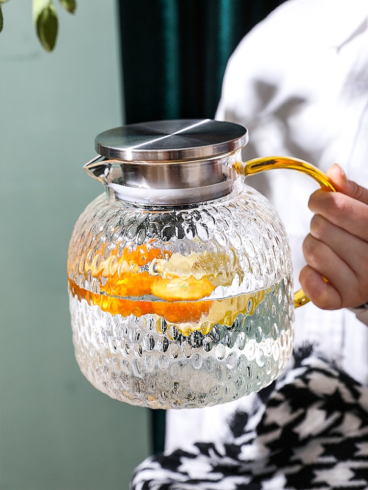 品名:耐熱玻璃錘紋款不鏽鋼把手水壺1500ML
