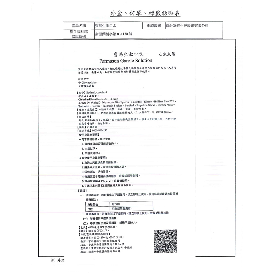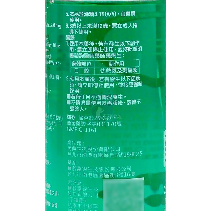 *適應症:口腔內之殺菌、消毒、清潔、去除口臭