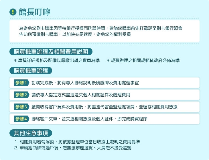 1.車輛一經領牌即無法辦理退換貨