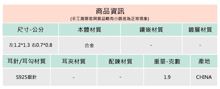 ◆耳環屬個人衛生用品,一經開封恕不退換。