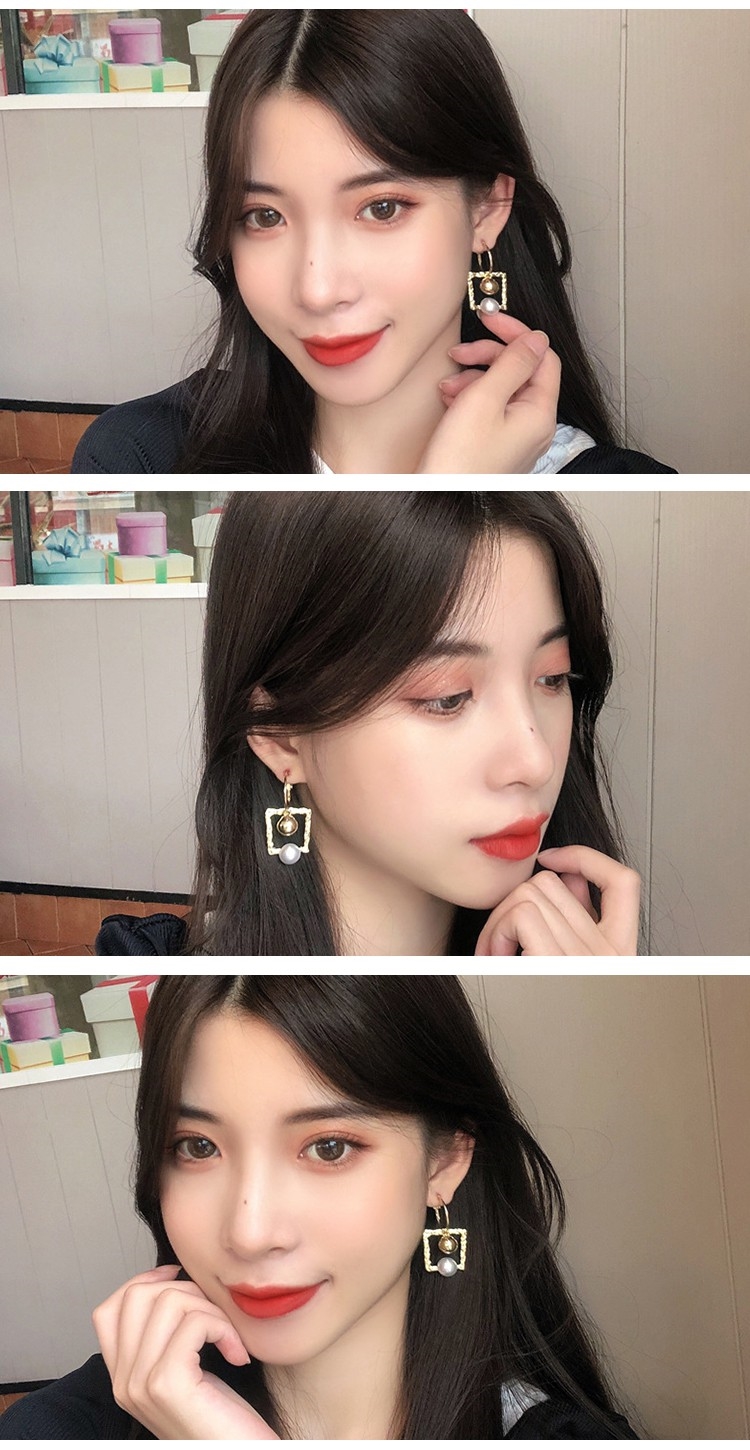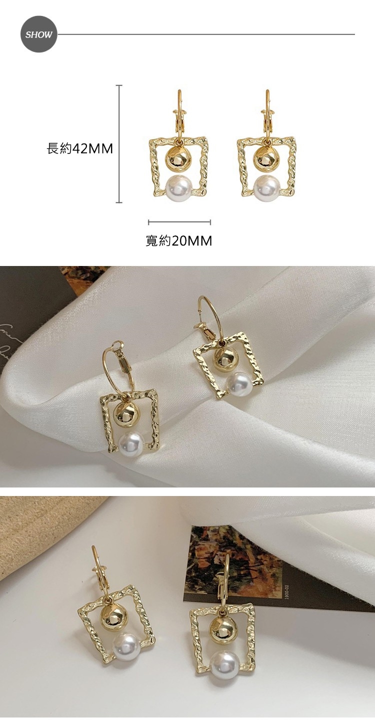 【INES】韓國設計S925銀針幾何方框金球珍珠復古造型耳環