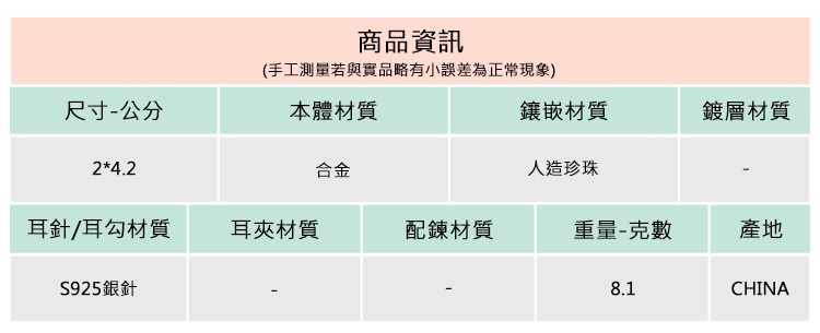 ◆合金飾品一經使用可能隨時間失去光澤或褪色,此為正常物理現象,妥善使用保存可延長飾品壽命。