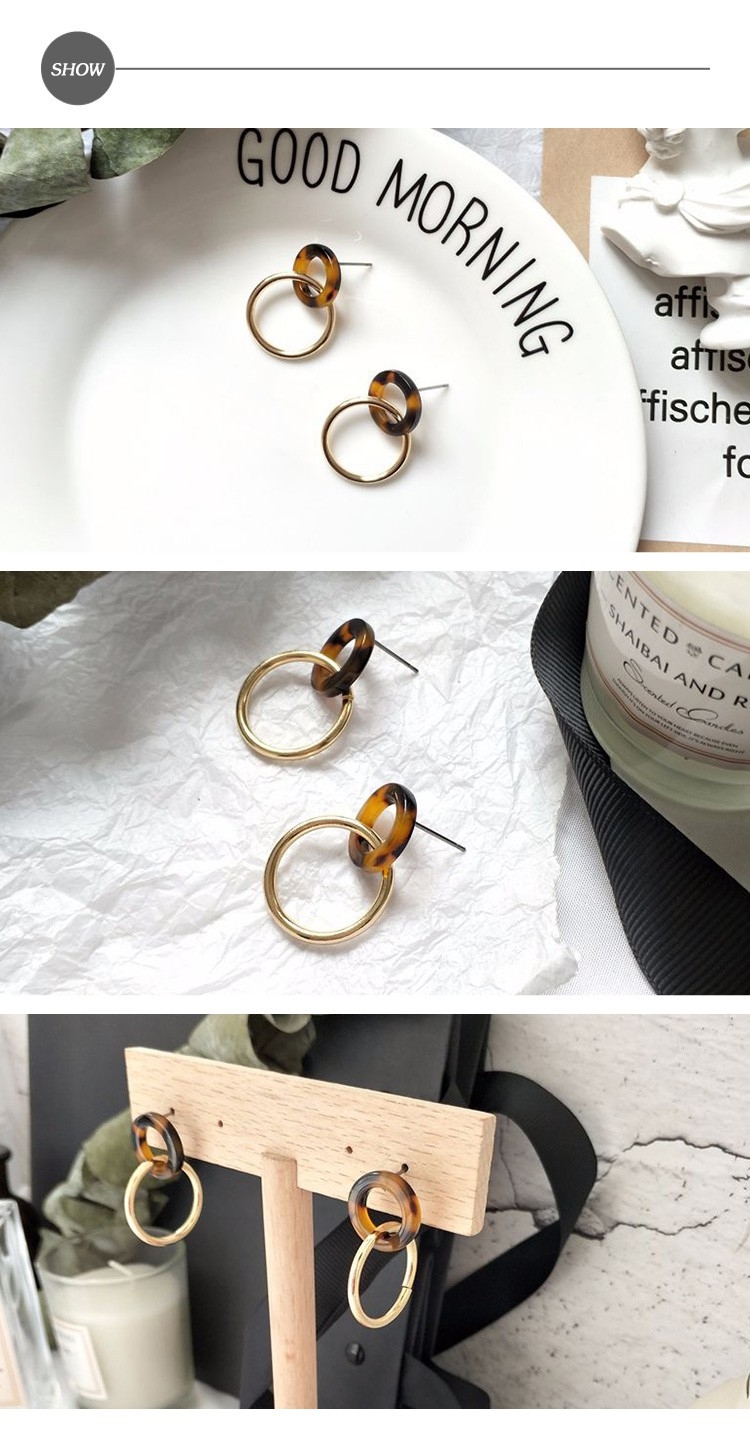 【INES】韓國設計復古玳瑁紋圈圈拼接耳環