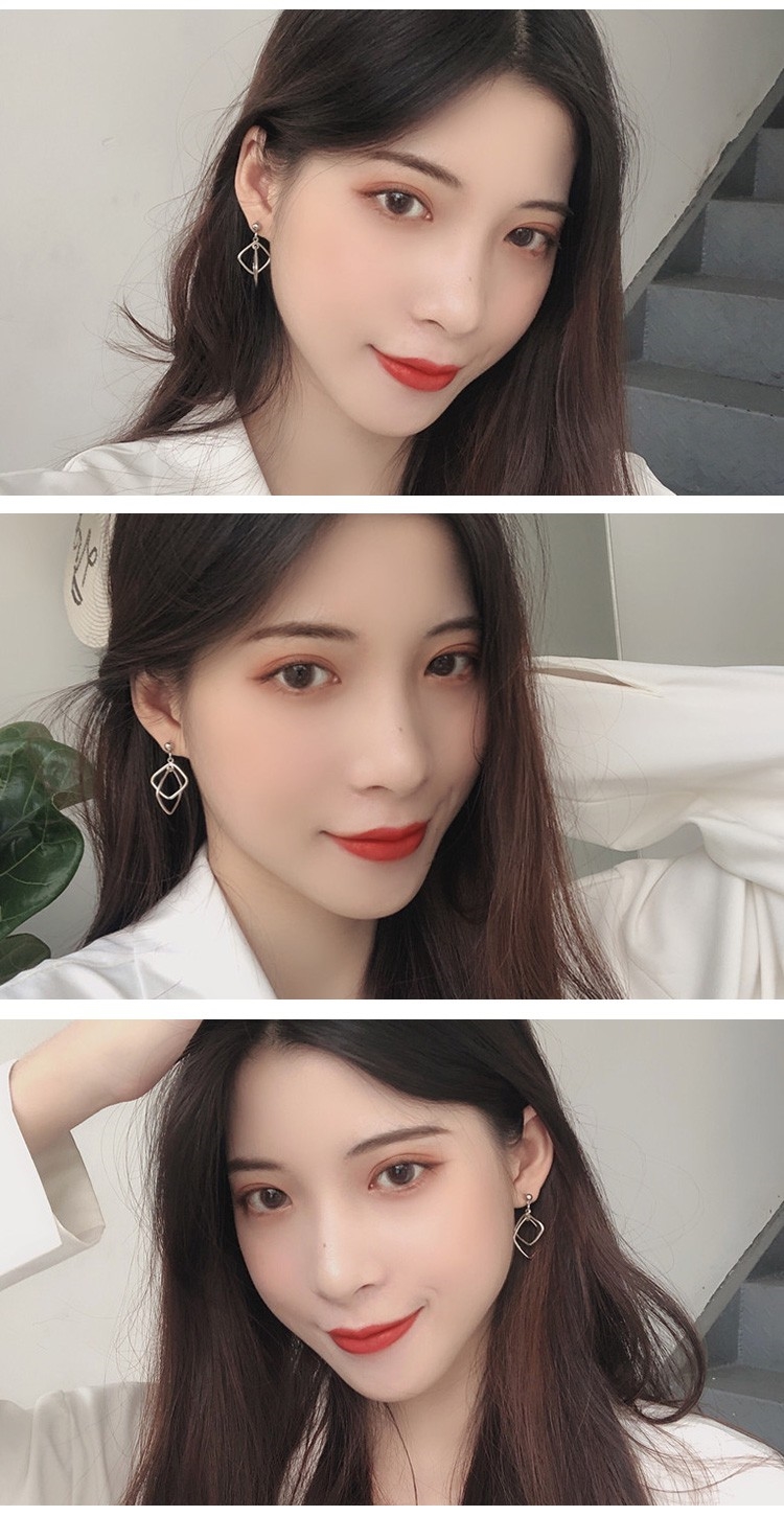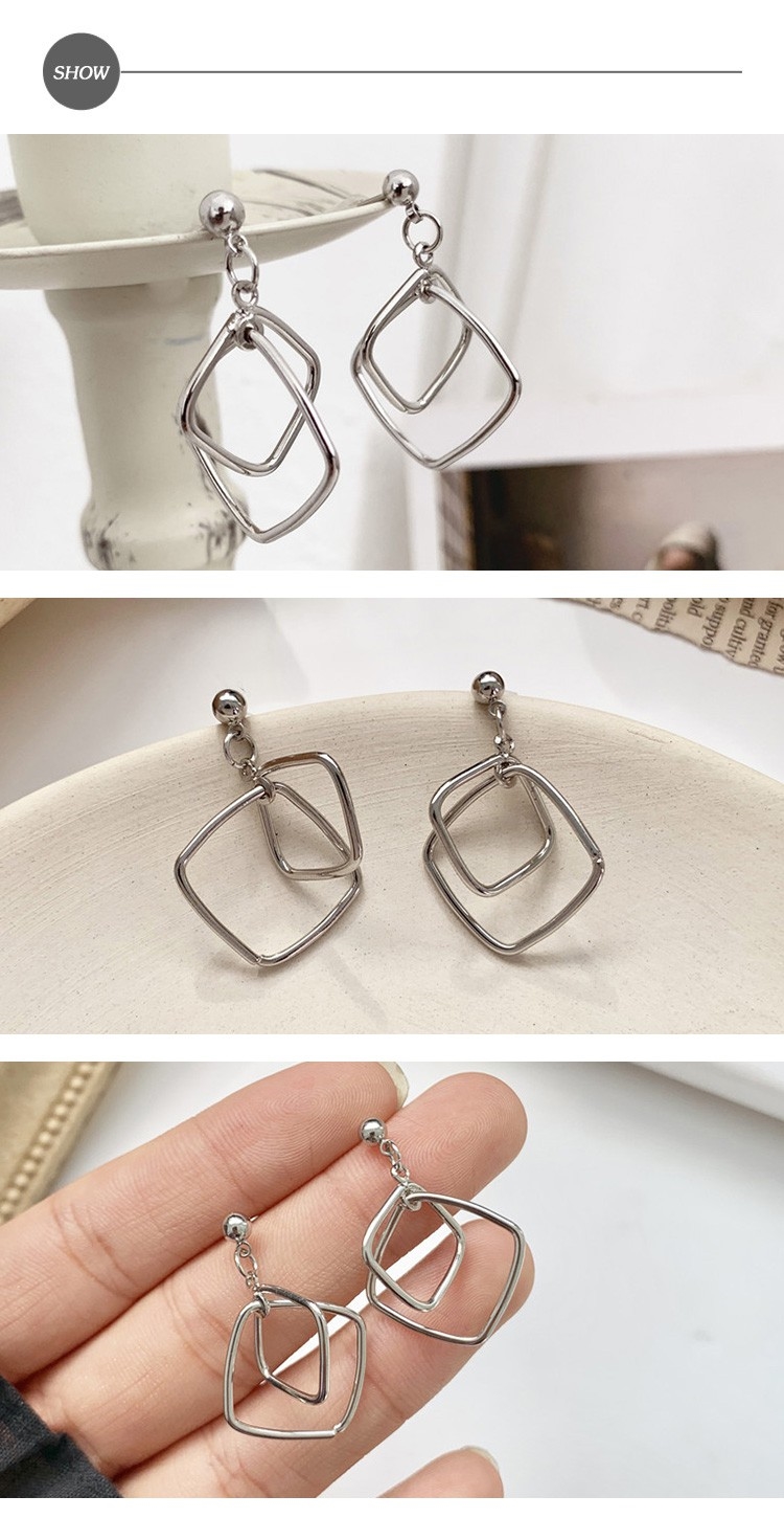 【00:00】韓國設計S925銀針幾何縷空方形線條拼接耳環