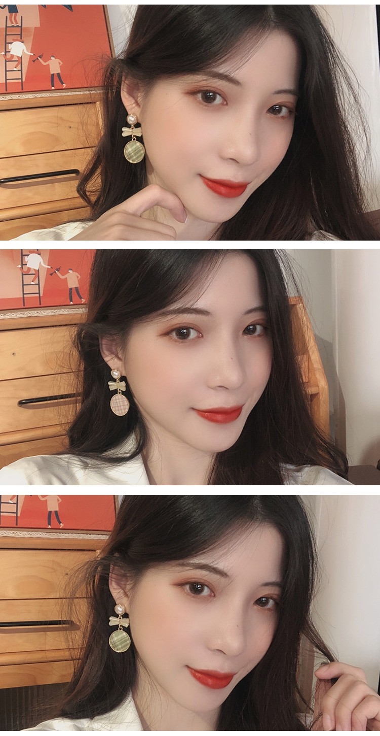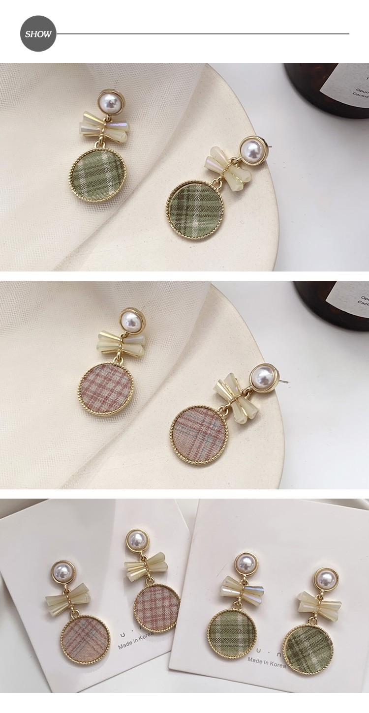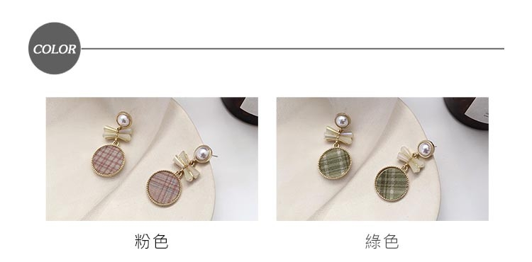 【MISA】韓國設計S925銀針清新甜美格子布蝴蝶結珍珠耳環 (2色任選)
