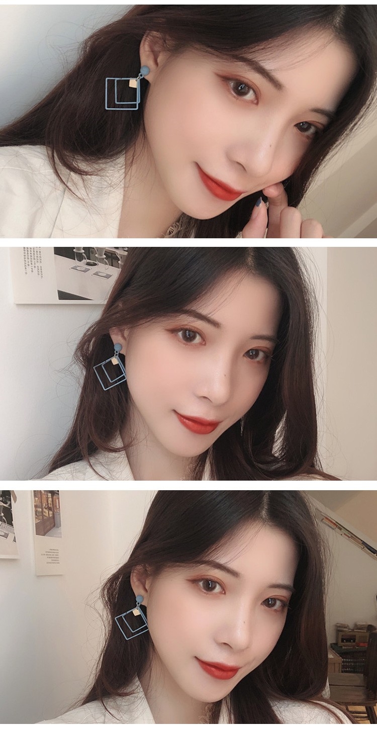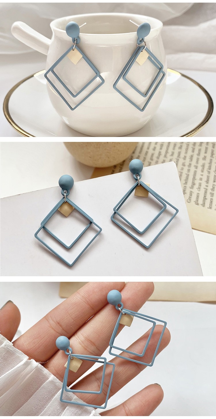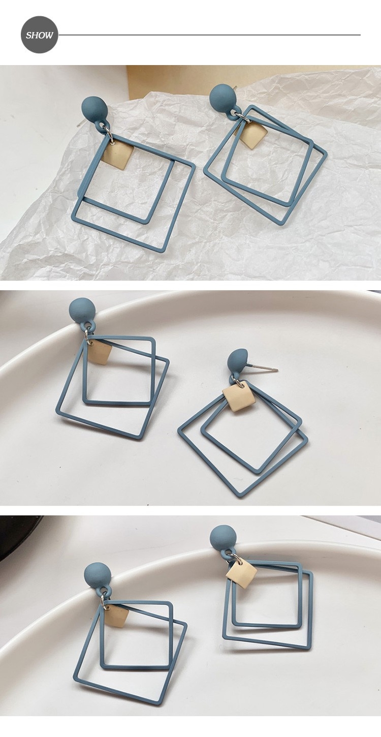 【INES】韓國設計S925銀針幾何方形線條啞光金屬片復古造型耳環