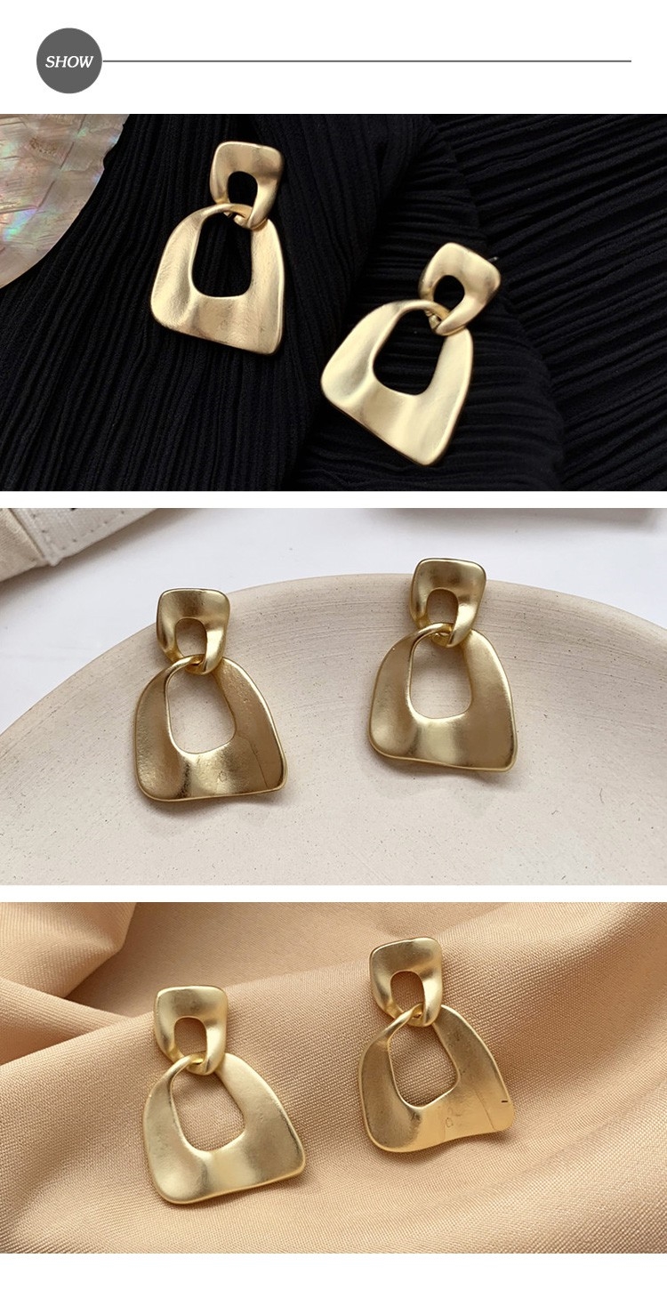 【INES】韓國設計S925銀針復古啞光金屬不規則手作感拼接造型耳環