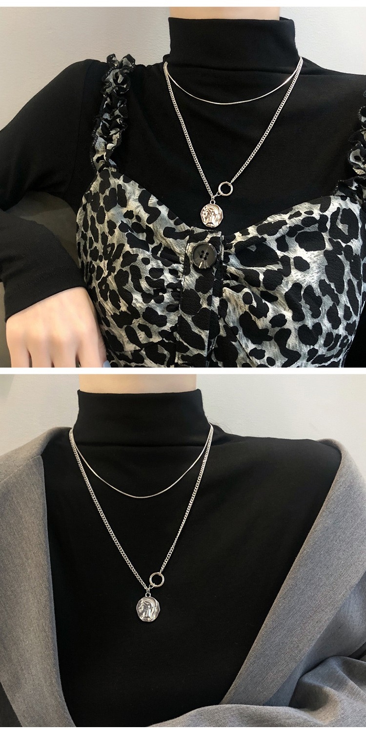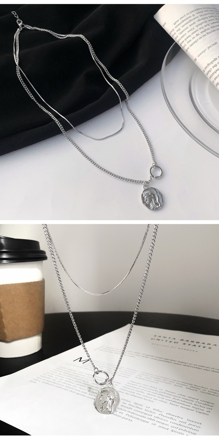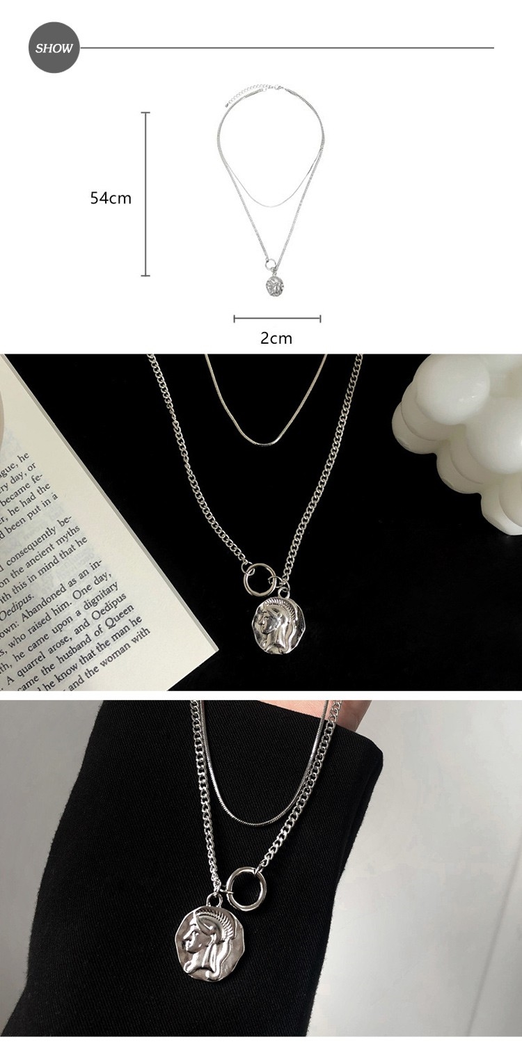 【00:00】韓國設計復古金屬人像吊牌雙層個性毛衣鍊