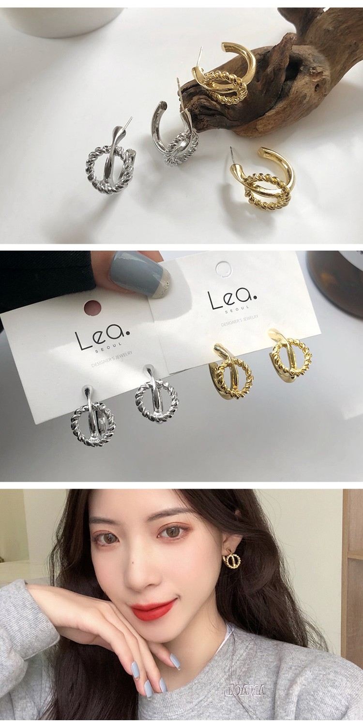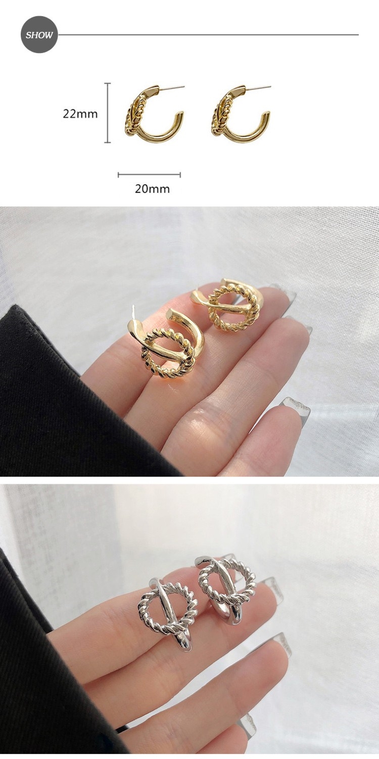 【00:00】韓國設計S925銀針復古金屬C形圈圈造型耳環 (2色任選)