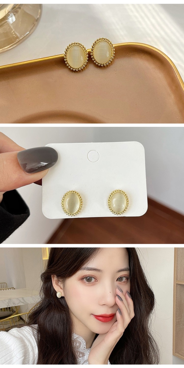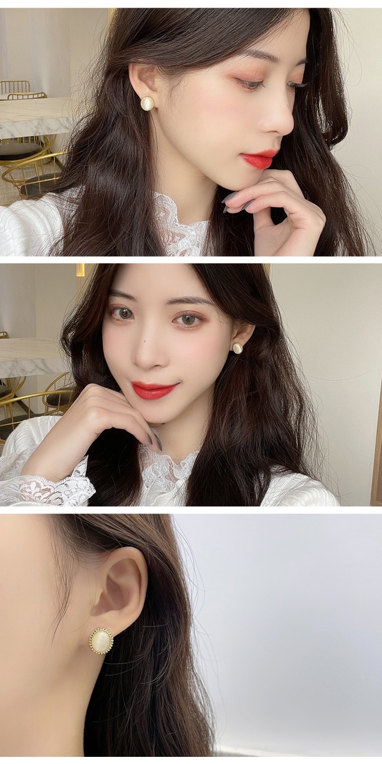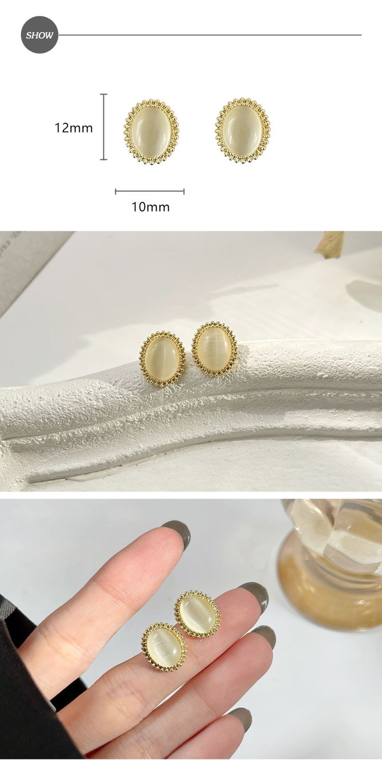 【SECRET BOX】韓國設計S925銀針復古小香風橢圓寶石耳環