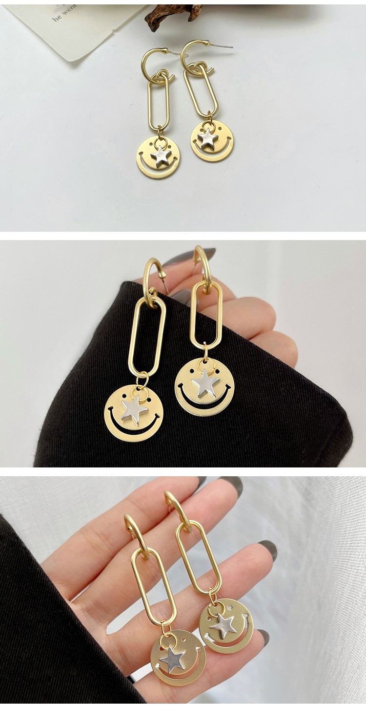 【00:00】韓國設計S925銀針可愛笑臉星星造型耳環