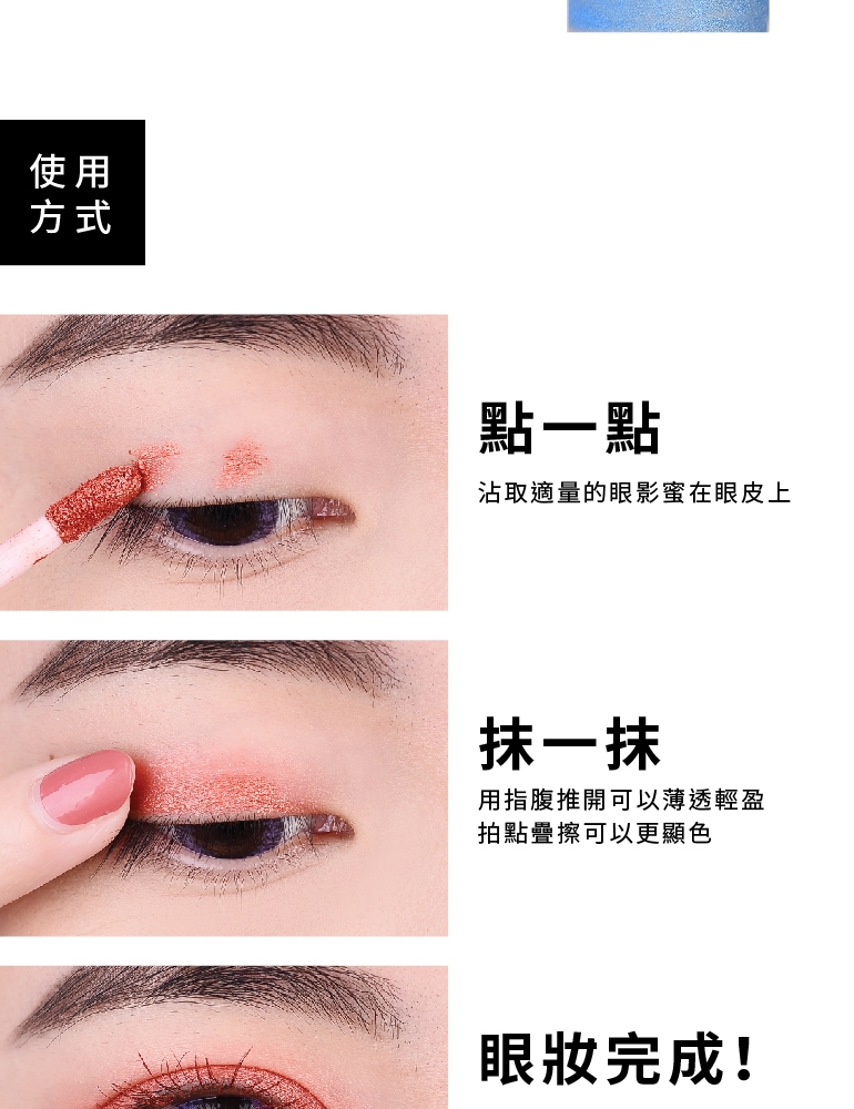 1. 點一點,棉頭沾取適量的眼影蜜拍點至眼皮上。