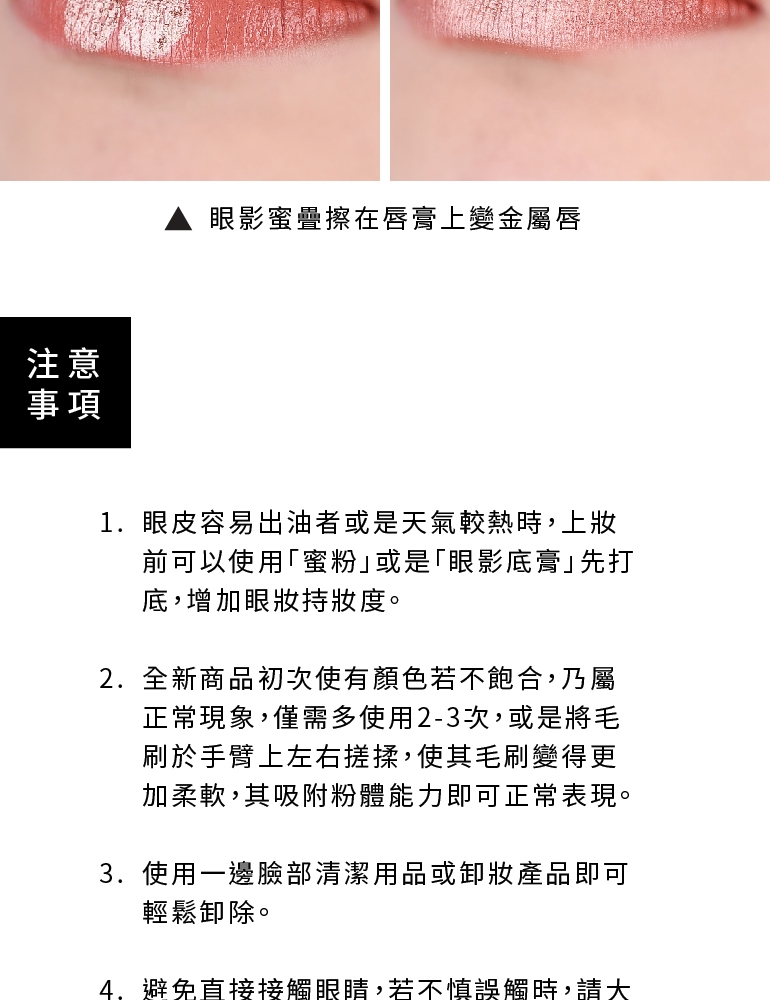 5. 眼影蜜按壓在唇上變金屬唇膏