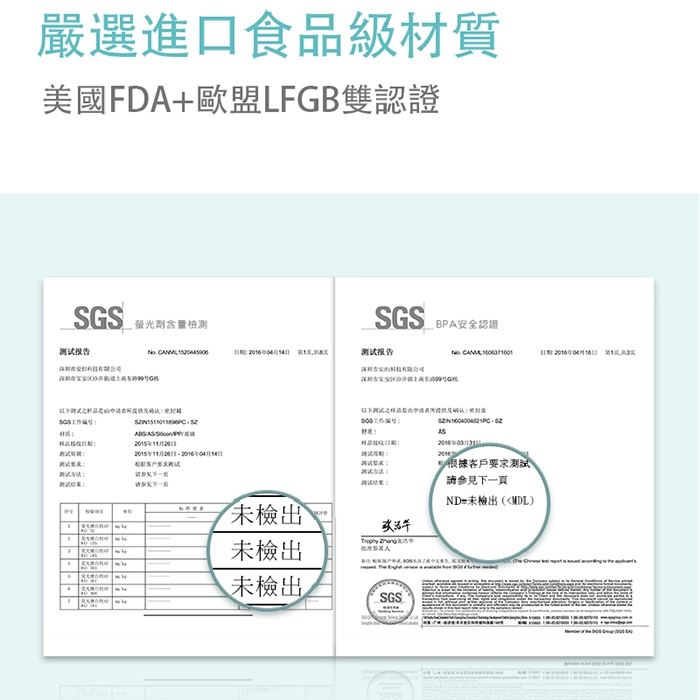 ◎ 其它認證:BPA free TEST REPORT、LFGB REPORT